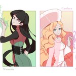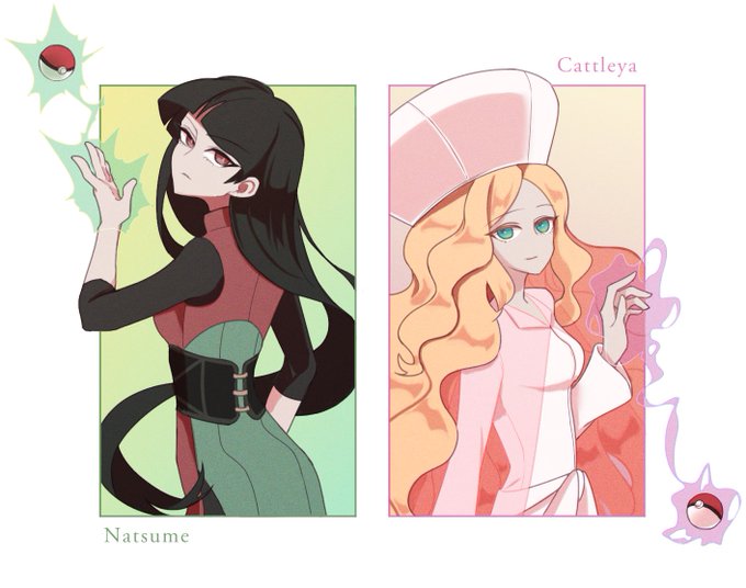 #ポケモントレーナー版深夜の真剣お絵描き60分一本勝負 クィーン系超能力タイプトレーナー & プリンセス系超能力タイプトレーナー 「黒髪ストレート」と「ブロンドカール」🥰 Queen type(Sabrina) & Princess type(Caitlin)