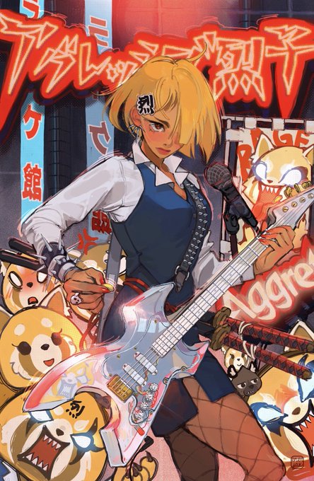 烈子Aggretsuko~🤟 Finally finished my Aggretsuko warrior who loves karaoke and you know what she decided to pick up bass 🎸💪 #illustration