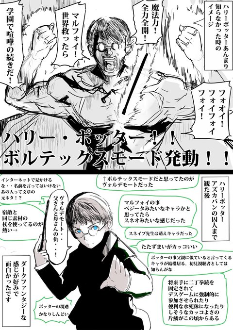 人生で初めてハリーポッターの映画を観たので感想絵を描きました。見る前のイメージと見た後のイメージだいぶ違って面白かったです!
