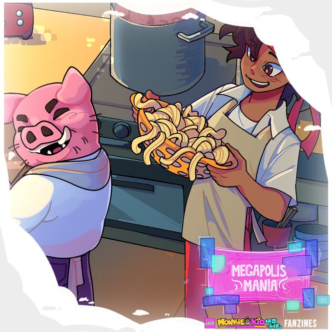 it's me again! here's a couple of previews of the merch i did for the @LMKFanzine !! 🐒💥 (Preorders open July 1st~) #LEGOMonkieKid #legomonkiekidfanart