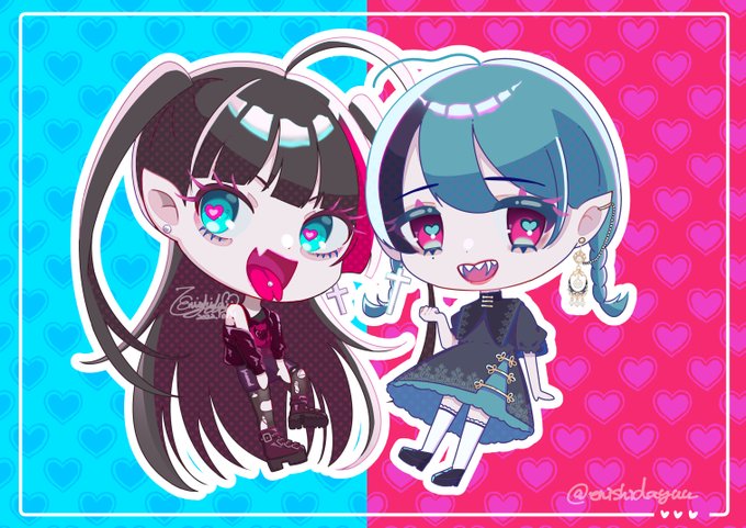 うちの子の吸血鬼ちゃん達❤️💙 #イラスト