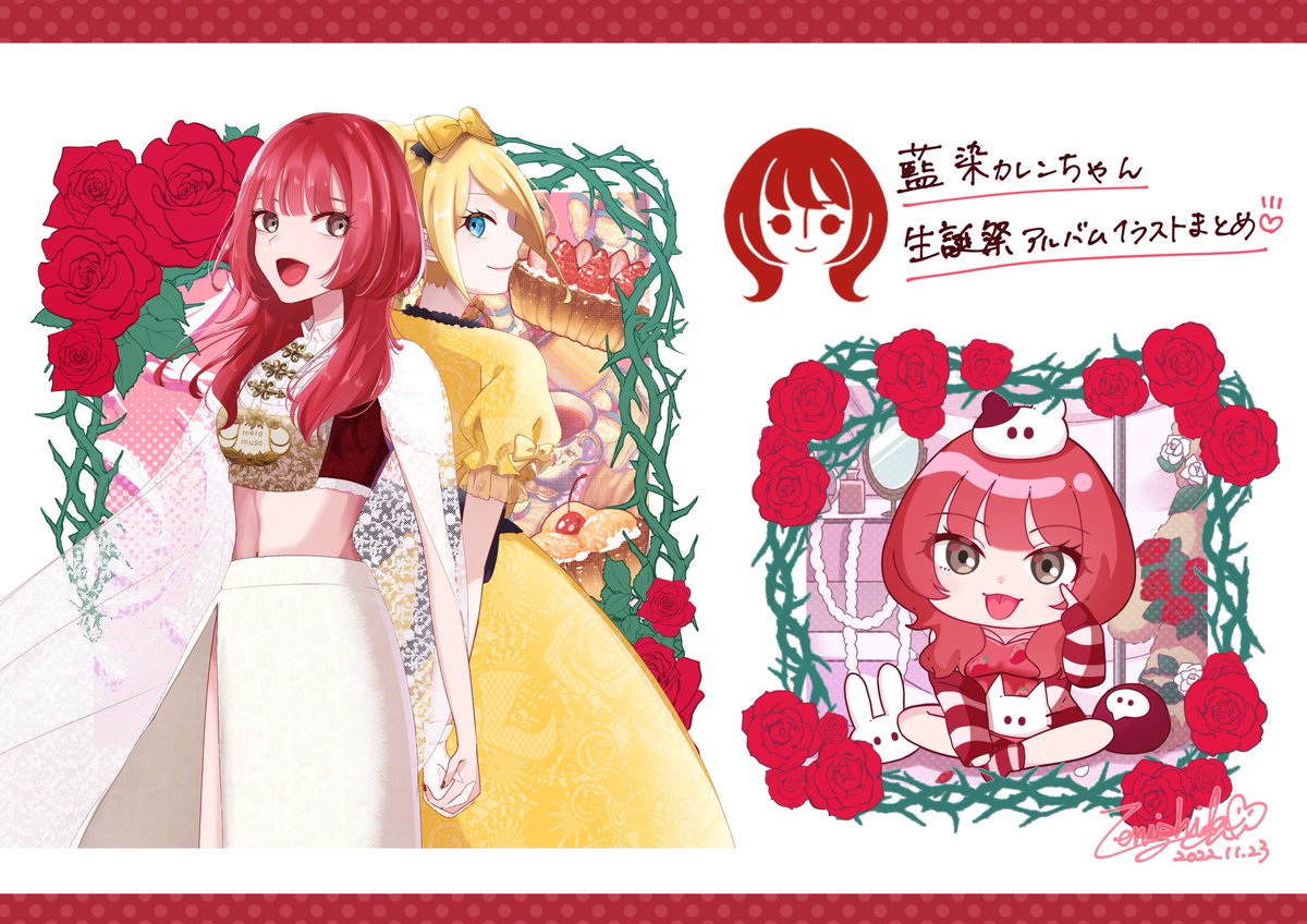 いまさらですが、藍染カレンちゃんの生誕祭アルバムのイラストを描かせていただきました! 花ゆめロゴ風のカレンちゃんとかもデザインしました〜! #イラスト
