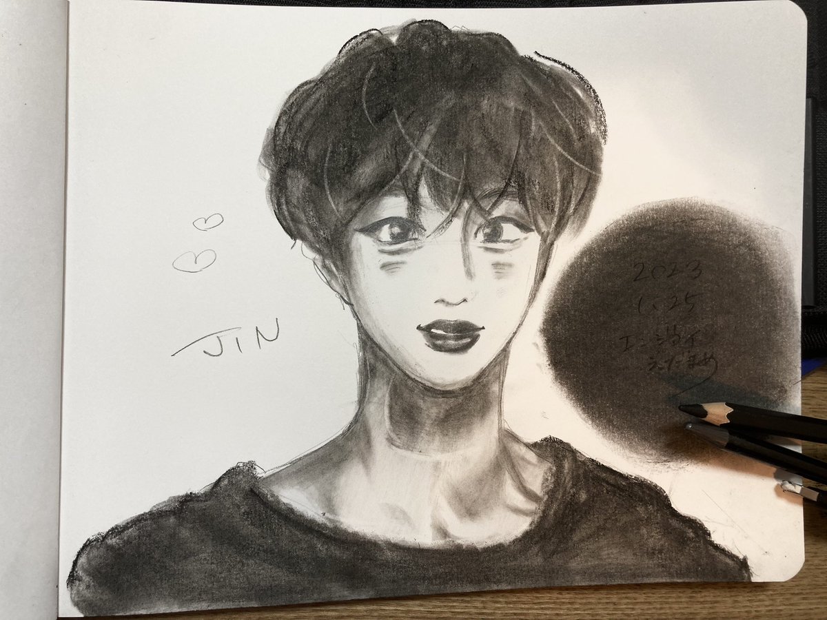 DFESTA🐹 木の板があったので木炭で描きました #btsfanart #WeLoveYouJin