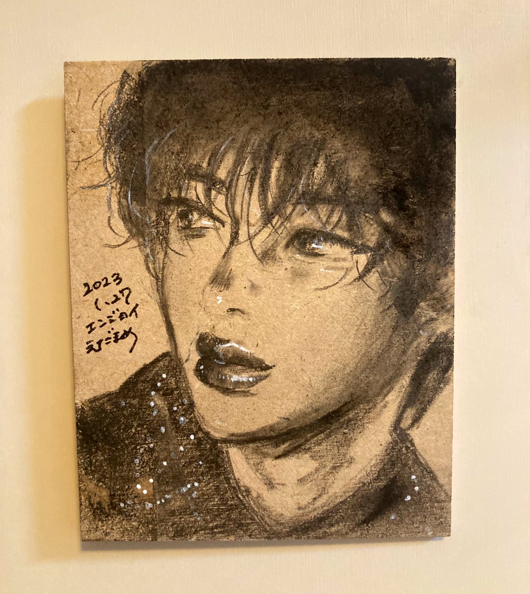 7 41 DFESTA🐹 木の板があったので木炭で描きました #btsfanart #WeLoveYouJin 23/01/27 21:37