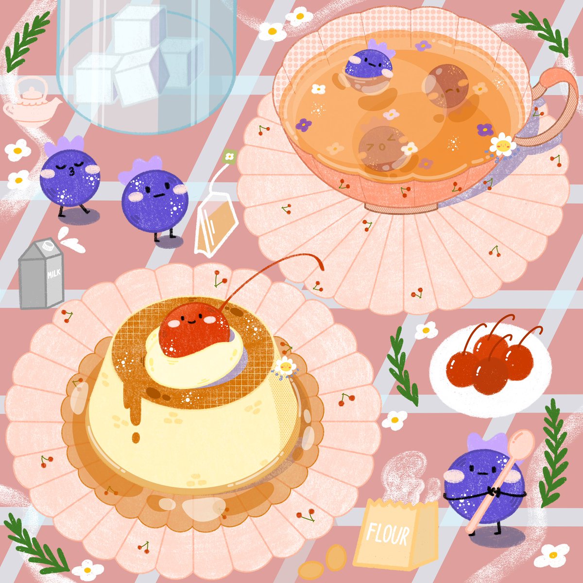 “I have too much on my plate and need some help.” Said bluberry with a teaspoon. #ArtistOnTwitter #art #artidn #illustraion