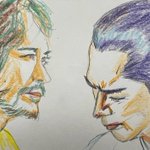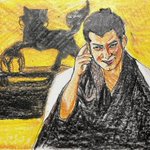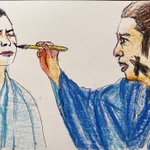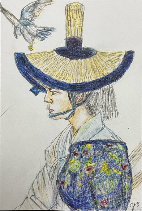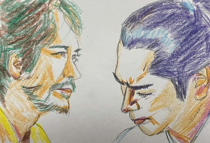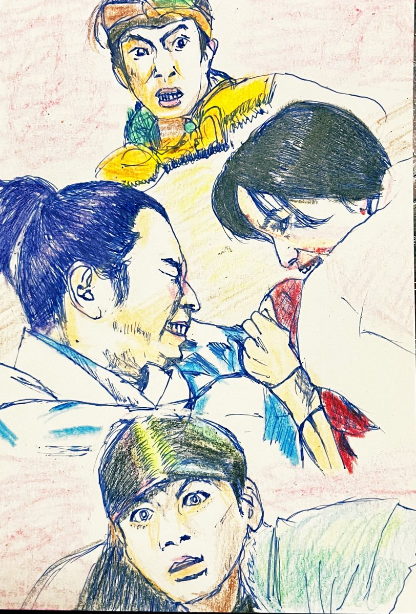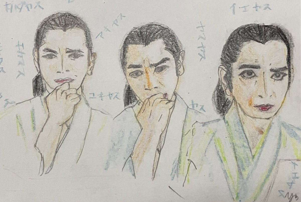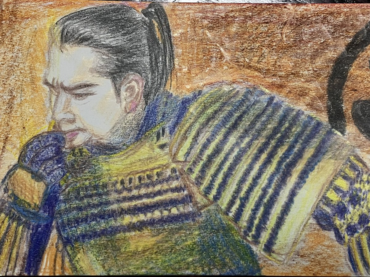 初登場シーンから伏し目。カッコイイ半蔵(ほんまにカッコイイです。力及ばずすまぬ。)この現場濃いw筆圧も濃くなる。 正信に連れてこられた半蔵はけっして目をあわせようとはしない。反して元康は目を見て半蔵を見定めようとするもできず。正信の同行を指示。 #どうする絵 #どうする家康