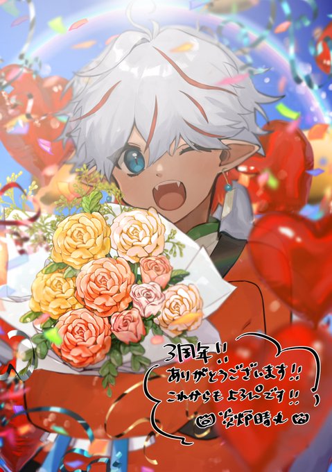 3周年ありがとうございました!🎉 これが己で己のお祝い絵を描いたあれです! twitter.com/enmaru9/status…
