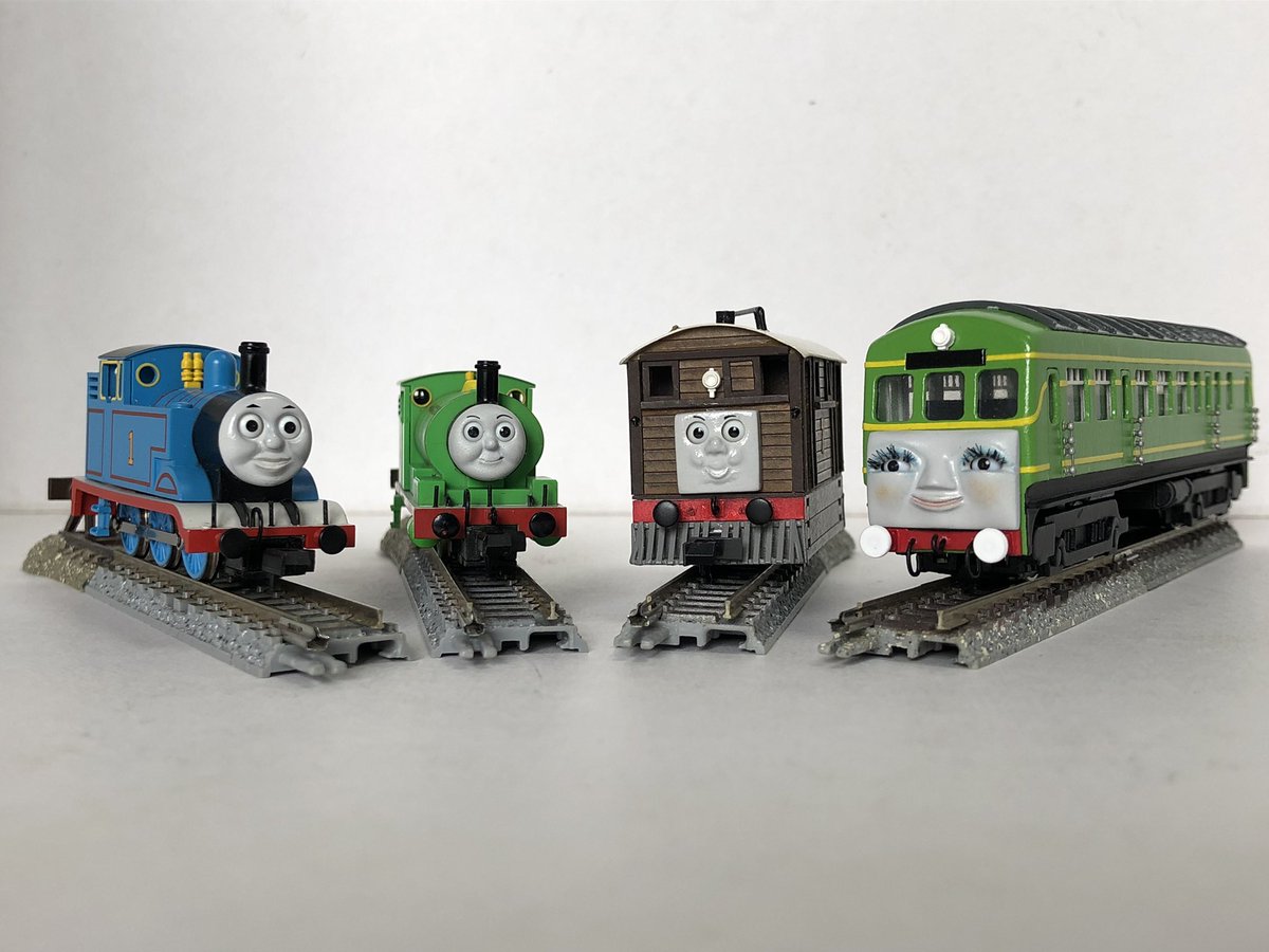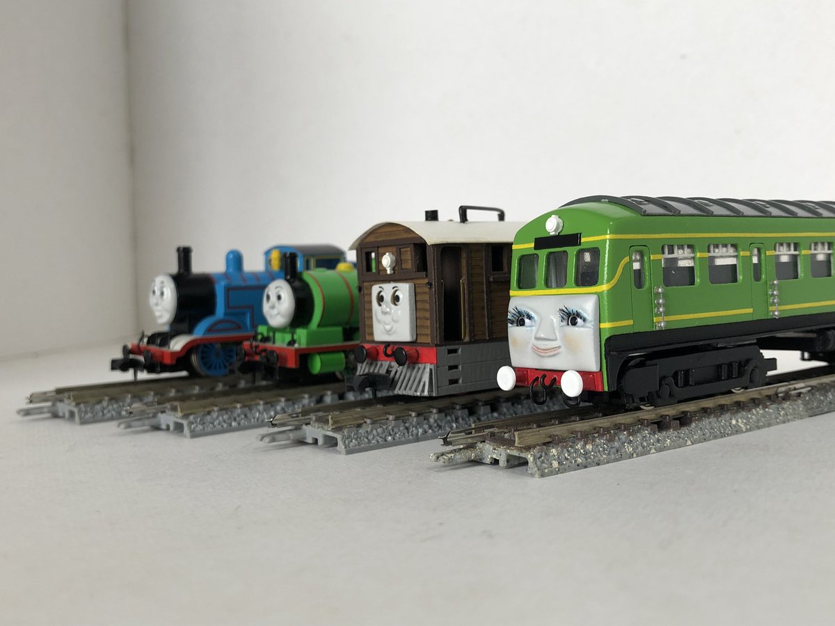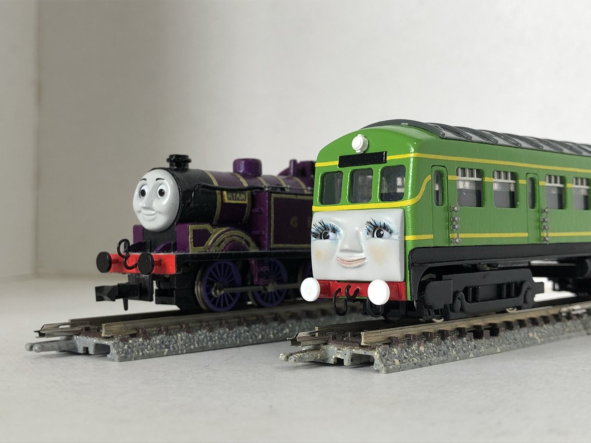 原作18巻のスクラップ機関車 LNWR 18xx 0-6-2とGWR 2251 class 0-6-0を作りました ボディは今回も厚紙とケント紙からフルスク、車輪はパテ複製、顔はそれぞれポケファントーマスと自作オリバー顔からの改造になります 表面の加工は消毒用エタノール吹き付け→乾かないうちにパステル粉吹きかけで