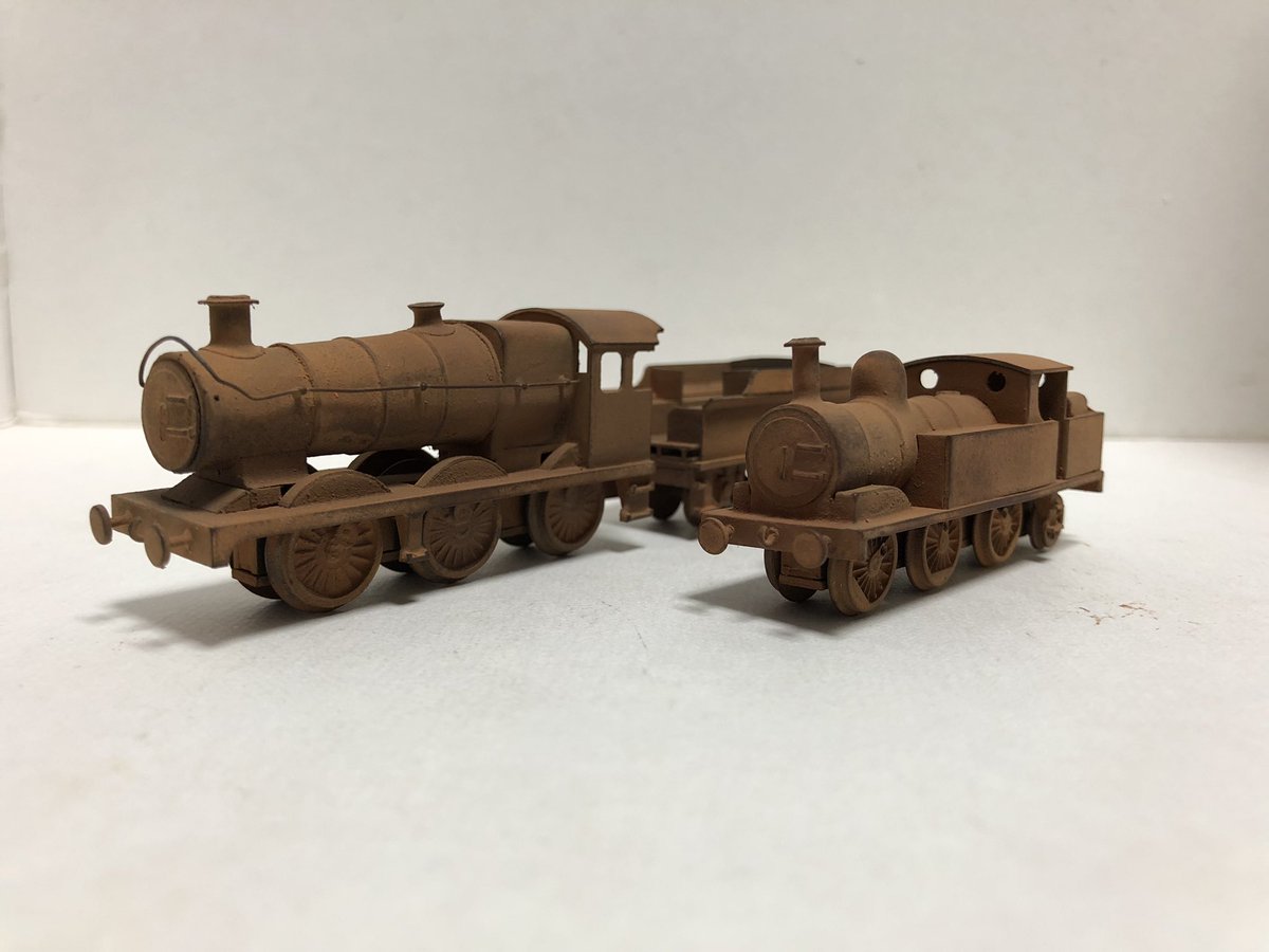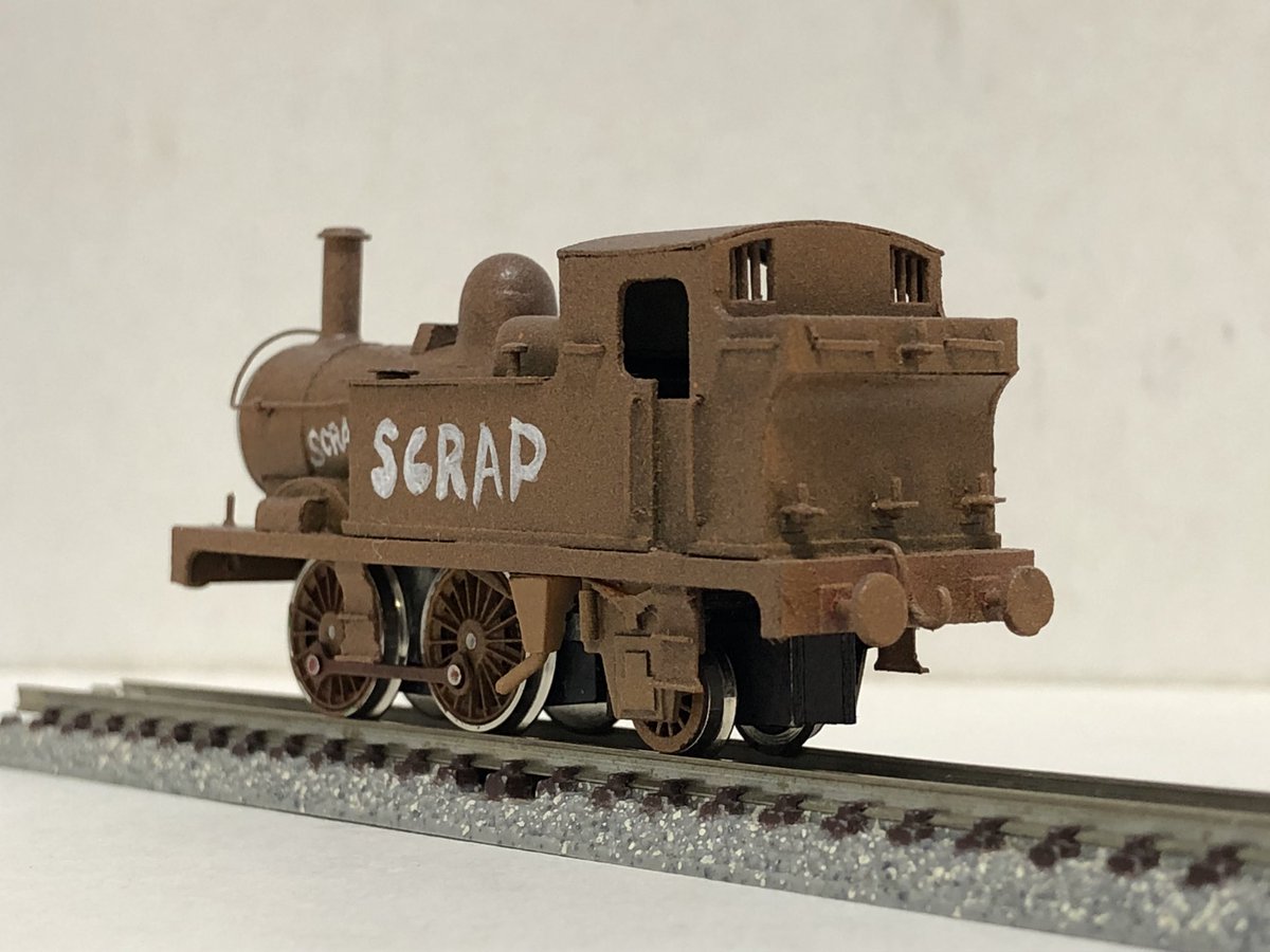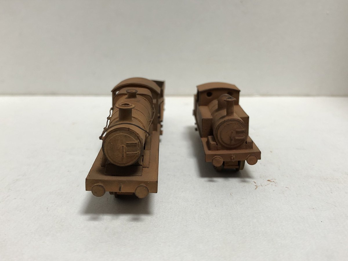 81 275 原作18巻のスクラップ機関車 LNWR 18xx 0-6-2とGWR 2251 class 0-6-0を作りました ボディは今回も厚紙とケント紙からフルスク、車輪はパテ複製、顔はそれぞれポケファントーマスと自作オリバー顔からの改造になります 表面の加工は消毒用エタノール吹き付け→乾かないうちにパステル粉吹きかけで 22/02/10 22:47