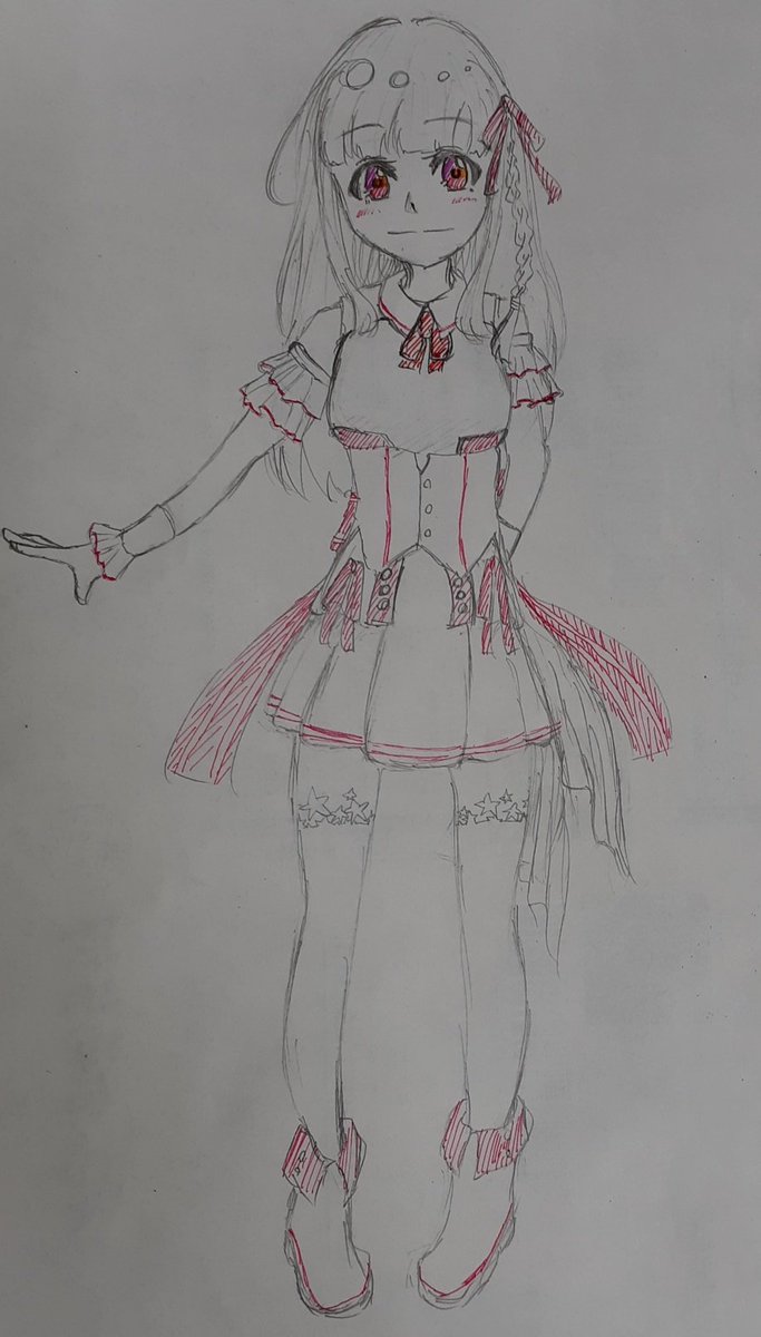 新衣装たまきちゃん描いた!ばばって描いちゃったから雑さが目立つけどめっっっっっっちゃかわいかったので描かずにはいられませんでした とてもかわいいですこの衣装で動くの楽しみにしてます!!!!! #えのぐ #えのぐ美術室