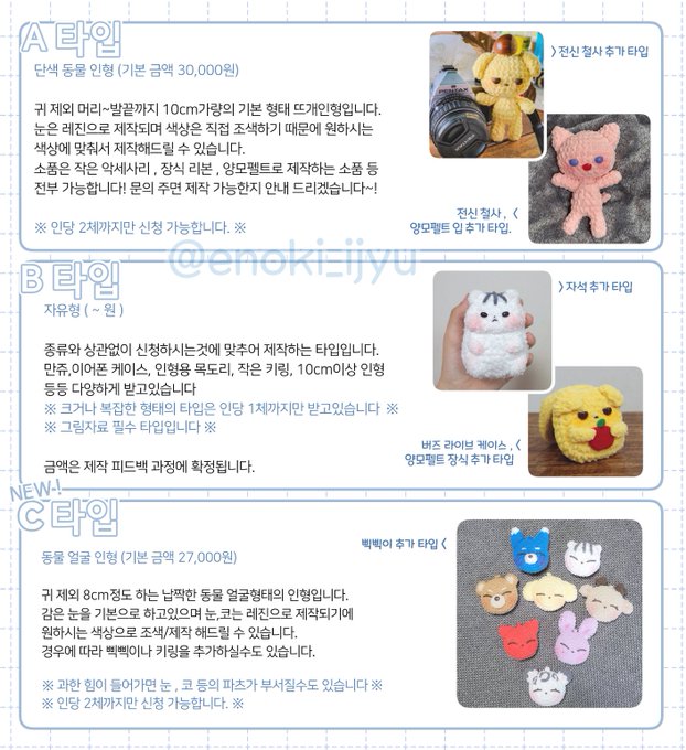 [RT추첨💞] C타입 등 많은것이 추가되었습니다! 기념으로 >알티+팔로우< 중 추첨을 통해 한분께 C타입 인형 하나를 제작해드립니다♡ ❗08/24 20시 03분 신청폼 오픈❗ 이외 관련 안내는 아래 링크를 확인 부탁드립니다 커미션 안내>enoki00.postype.com/post/11334791 커미션 신청>witchform.com/deposit_form/4… twitter.com/i/web/status/1…
