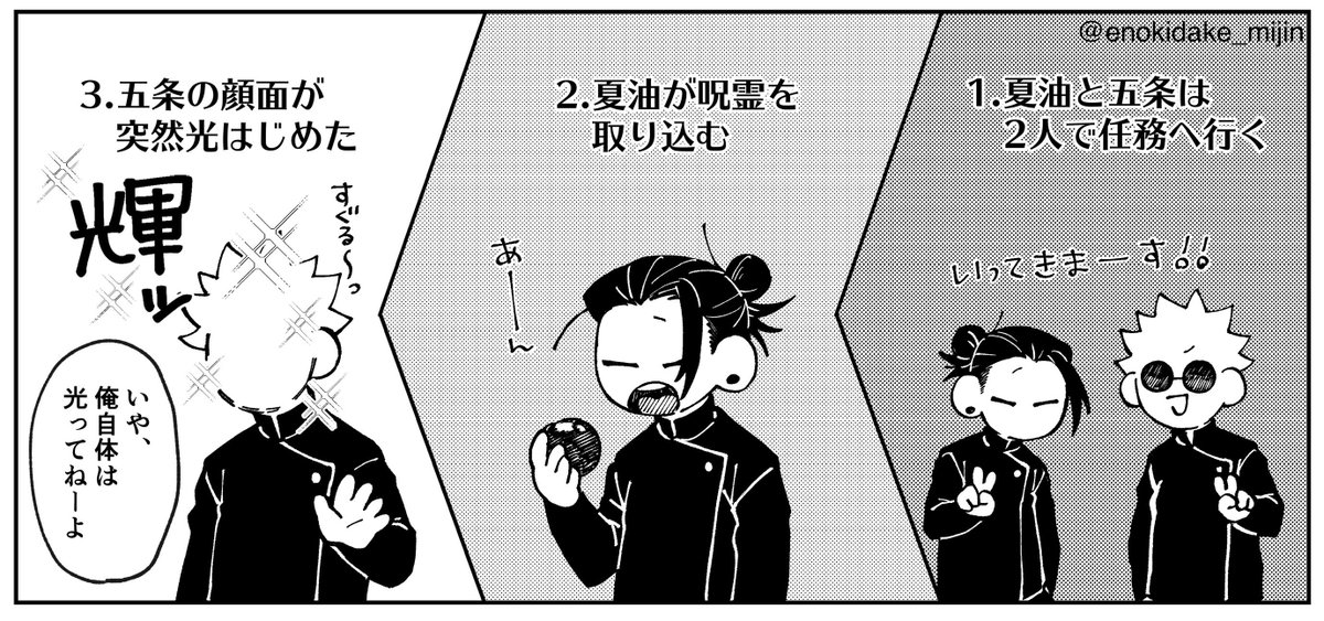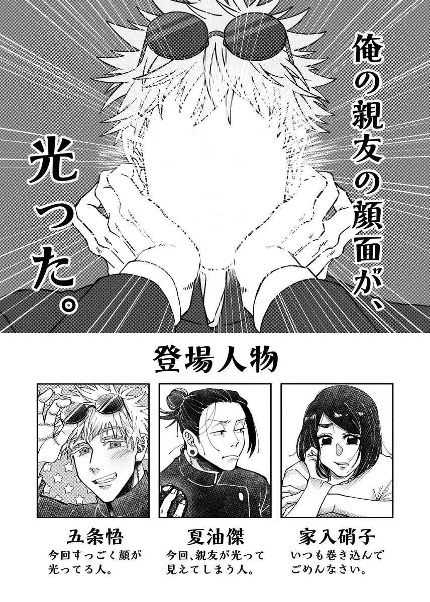 【10/16】夏五新刊 「私の親友の顔面が、光った。」 A5/28P 呪専時代に変な呪霊を取り込んで五の顔が光って見える夏のお話!!!!! アルブライトに擬似エンボス表紙の予定です✨✌️🌈 ◆pixiv pixiv.net/artworks/10175… ◆とらのあな ec.toranoana.jp/joshi_r/ec/ite…