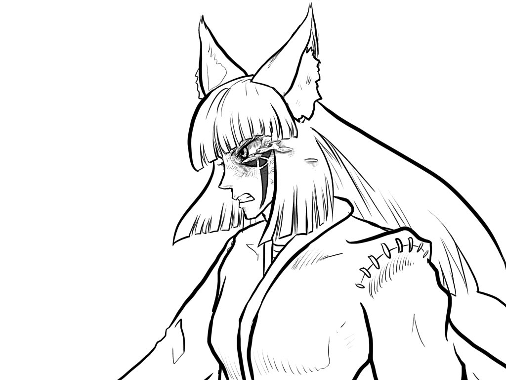 3 22 なんか抜刀しようとしてるっぽい狐っ娘 #イラスト #お絵かき #きつね #日本刀 #巫女服 22/12/24 20:55