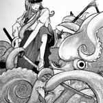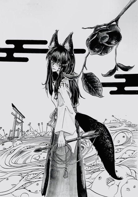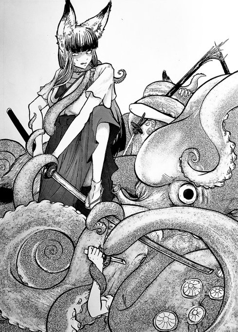 48 161 大蛸の妖怪が地元の漁師さんを困らせていると聞き退治しに向かったけれどちょっと無理っぽい狐の巫女さんたち #イラスト #アナログイラスト #狐っ娘 23/06/15 00:42