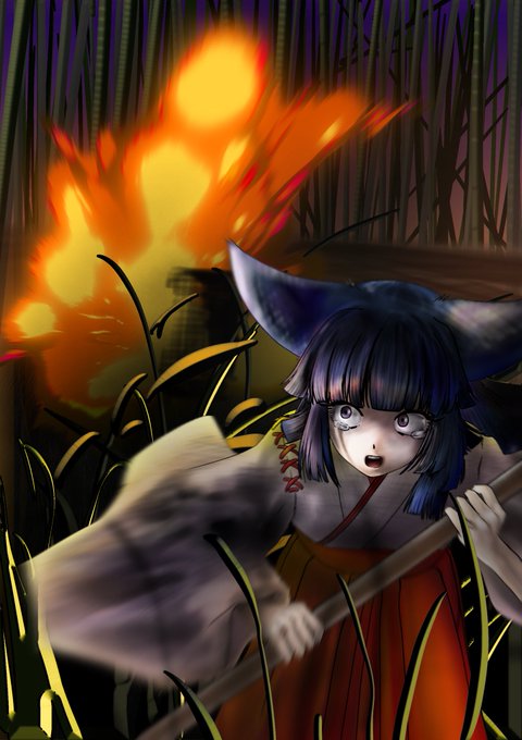 5 18 敵軍の狐火にビビって逃げ出す巫女服姿の狐ちゃん #イラスト #きつね #お絵かき 22/12/10 19:56