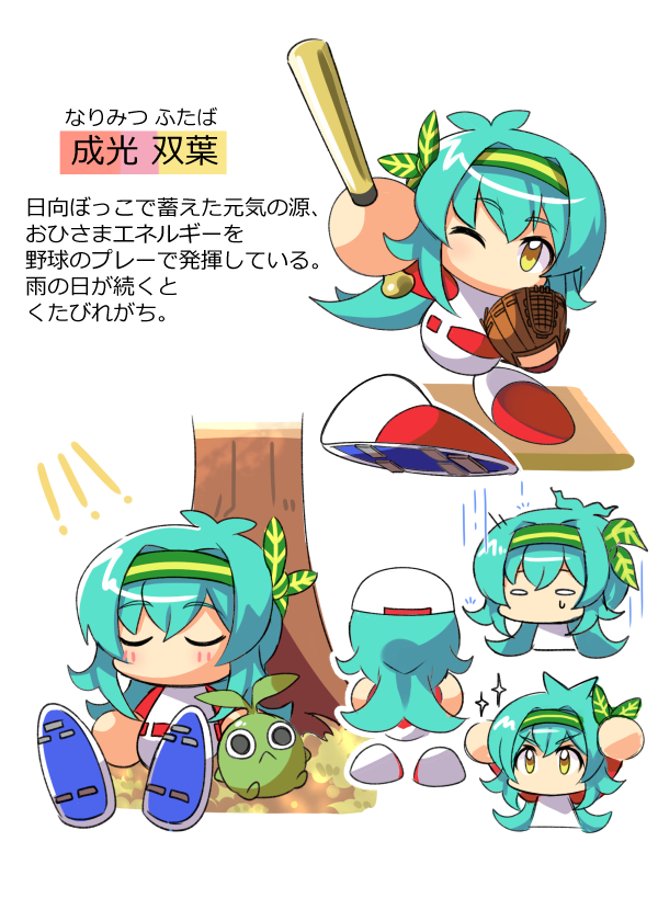 成光 双葉 (なりみつ ふたば) 日向ぼっこで蓄えた元気の源、 おひさまエネルギーを野球のプレーで発揮している。 雨の日が続くとくたびれがち。 双葉がトレードマーク(?)の女の子です。 #オリジナルキャラ部門 #パワプロアプリ7周年