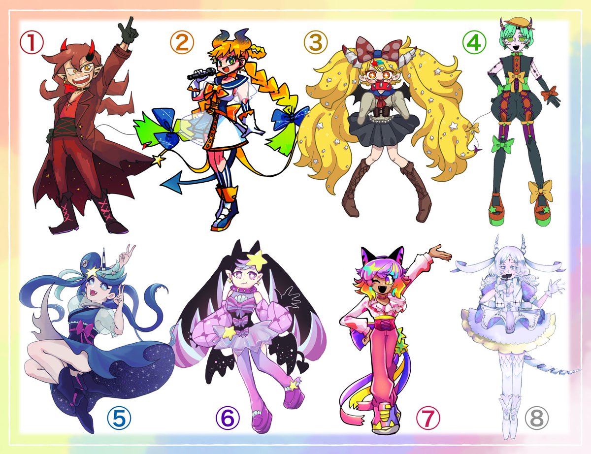 いぬドックさん主催の #誰のキャラデザだゲーム に参加いたしました!テーマはアイドルです! 私は3番の子を描かせていただきました!リプ欄のアンケートから私がデザインした女を当ててみてください!