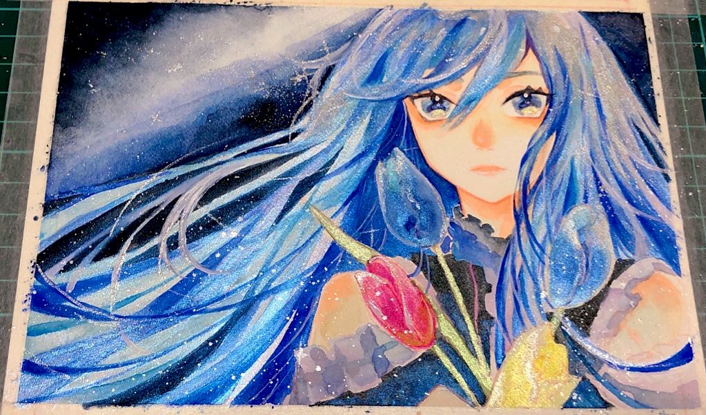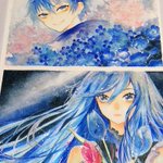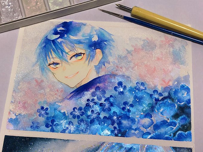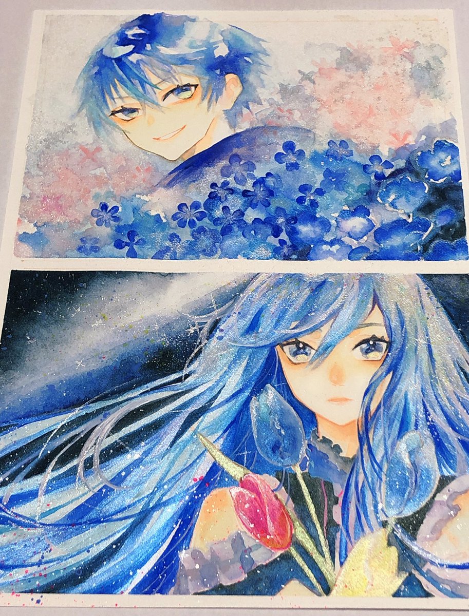 やっっとイラスト完成したので! 透明水彩メインで顔彩とカラーインクで描いています 下が1枚目、上が2枚目です キラキラが好きです! #絵描きさんと繋がりたい #夏の創作クラスタフォロー祭り #お絵描き好きさんと繋がりたい #イラスト #お絵描き #水彩画 #顔彩 RT、いいね巡回します!✨✨✨