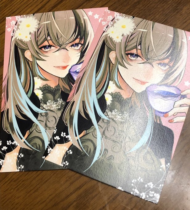 人生で初めて印刷会社さんへ ポストカードを依頼しました! ㍿グラフィックさんの ビビットカラー印刷✖️ペルーラスノーホワイト紙です! キラキラ絵の具や箔押しを後から加筆しようと思いましたが、やらなくても十分華やかで綺麗で驚きました(*´꒳`*) 明日マット額装します✨ #イラストパッケージ展