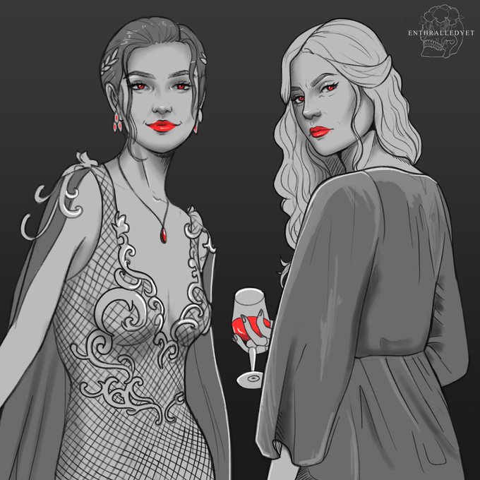 VTMTober Day 4 - Elysium Fashion. Here are Belle and Carla, Primogen of the Toreador and Ventrue in San Antonio, looking polished. Oh, and they were just talking about you. #vtmtober #inktober #vtm #Vampirethemasquerade #worldofdarkness