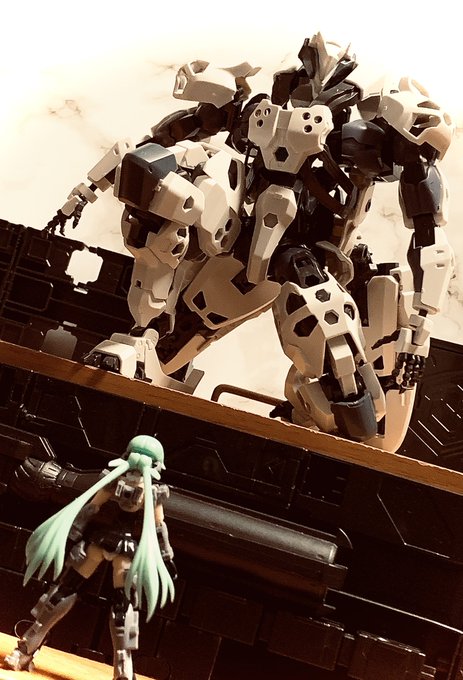 ヘキサギア続き 今回は、ハンドスケール スティレットさん用のヘキサギアとしてオーダーメイド。 左右の腕に大型のウェポンをマウントできます。 #ヘキサギア #オモ写 #FAガール
