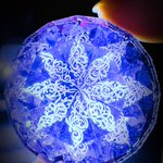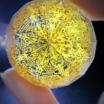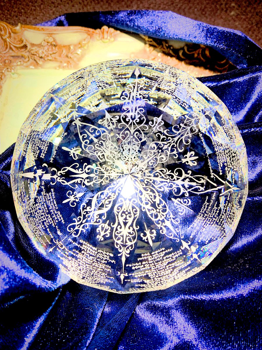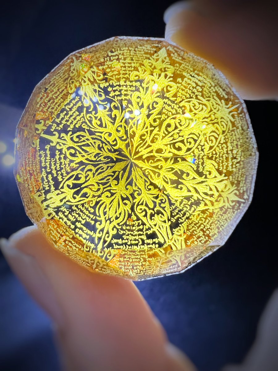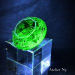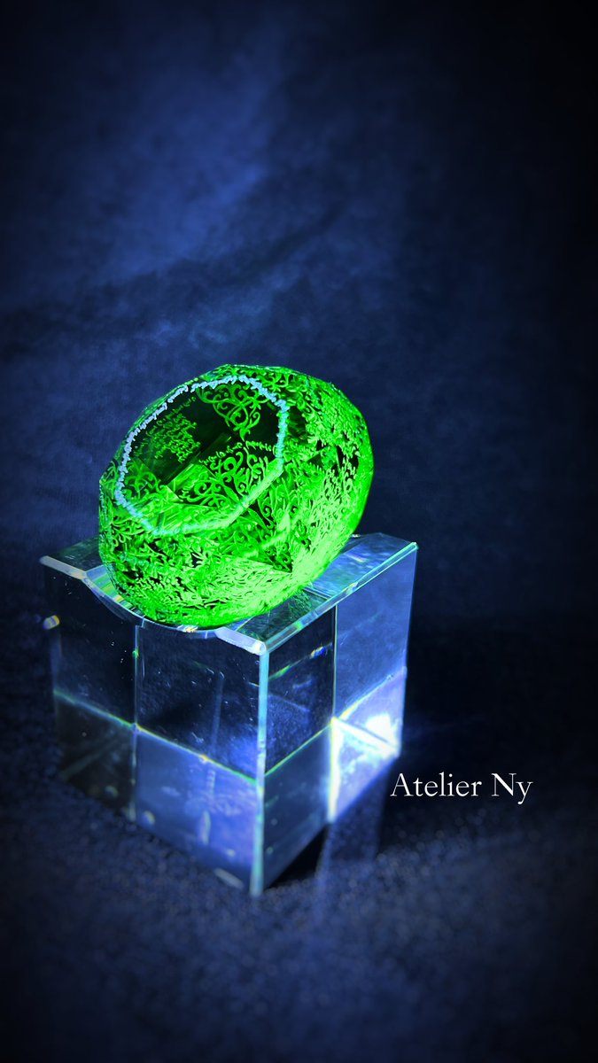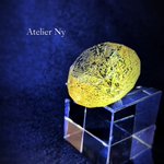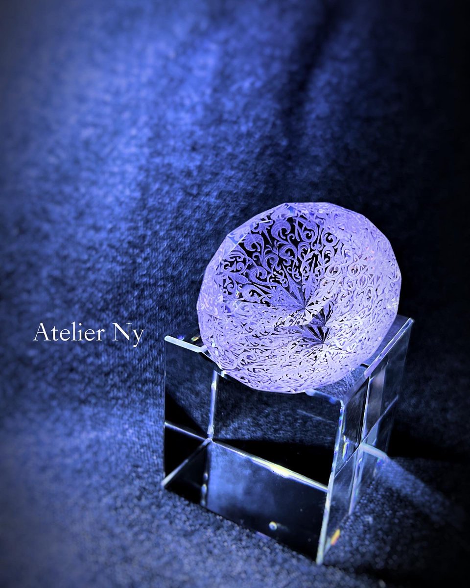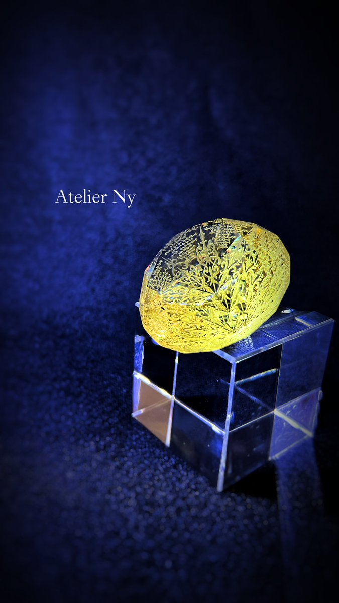 レモンイエローな子。 電動ルーターを使用してフリーハンドの手彫りで制作しています。 大きさですが直径40mmぐらいです。 エルデンリングにこんなのありそうよね。 #ハンドメイド #ハンドメイド好きさんと繋がりたい #ガラスエングレービング