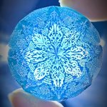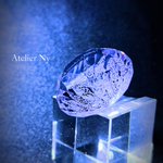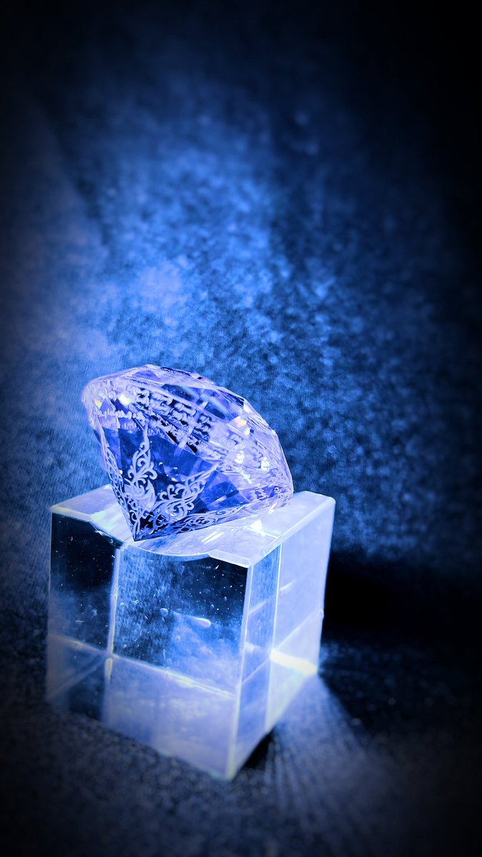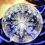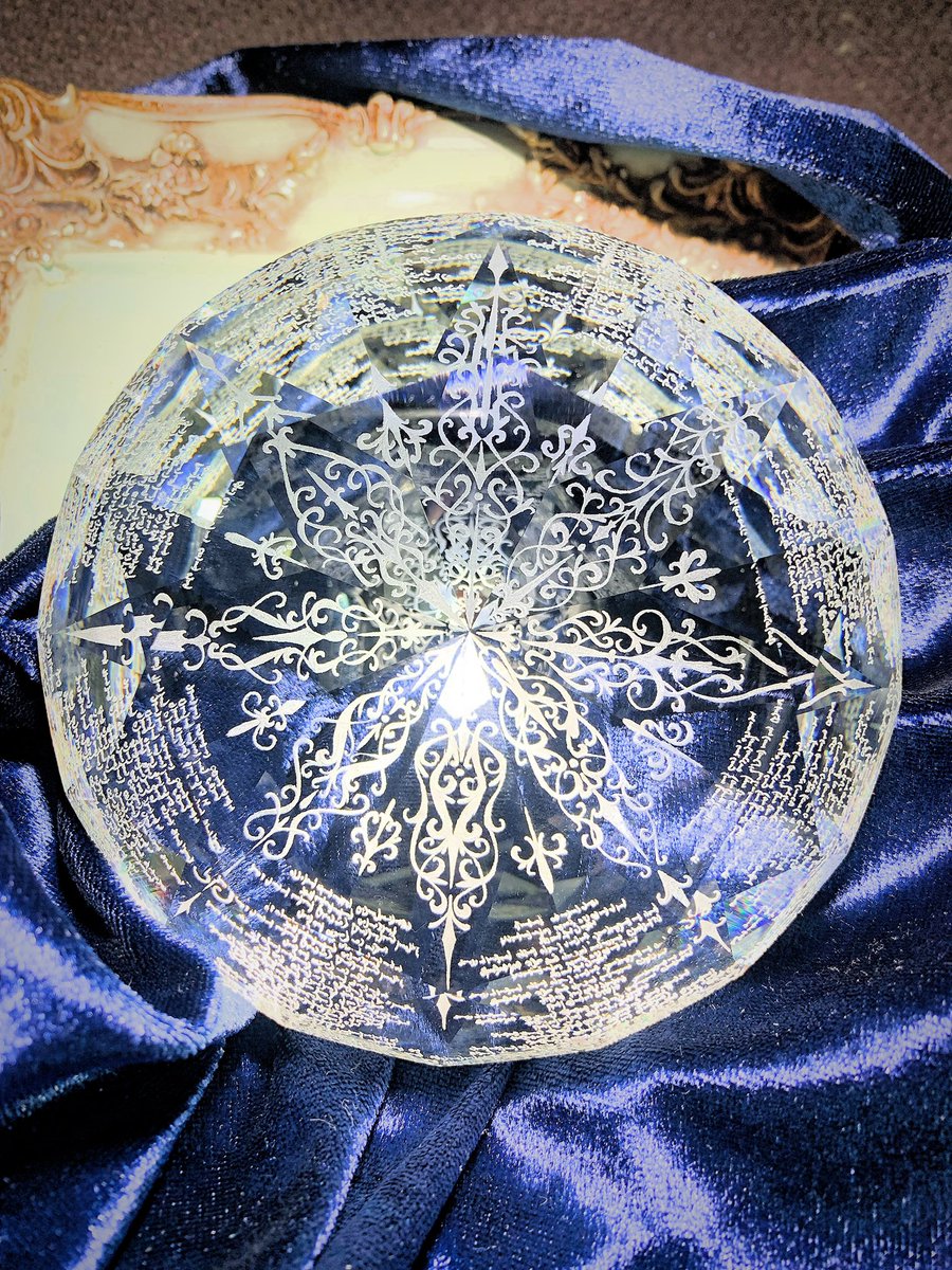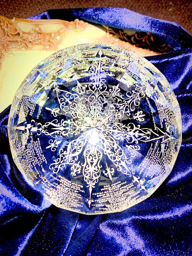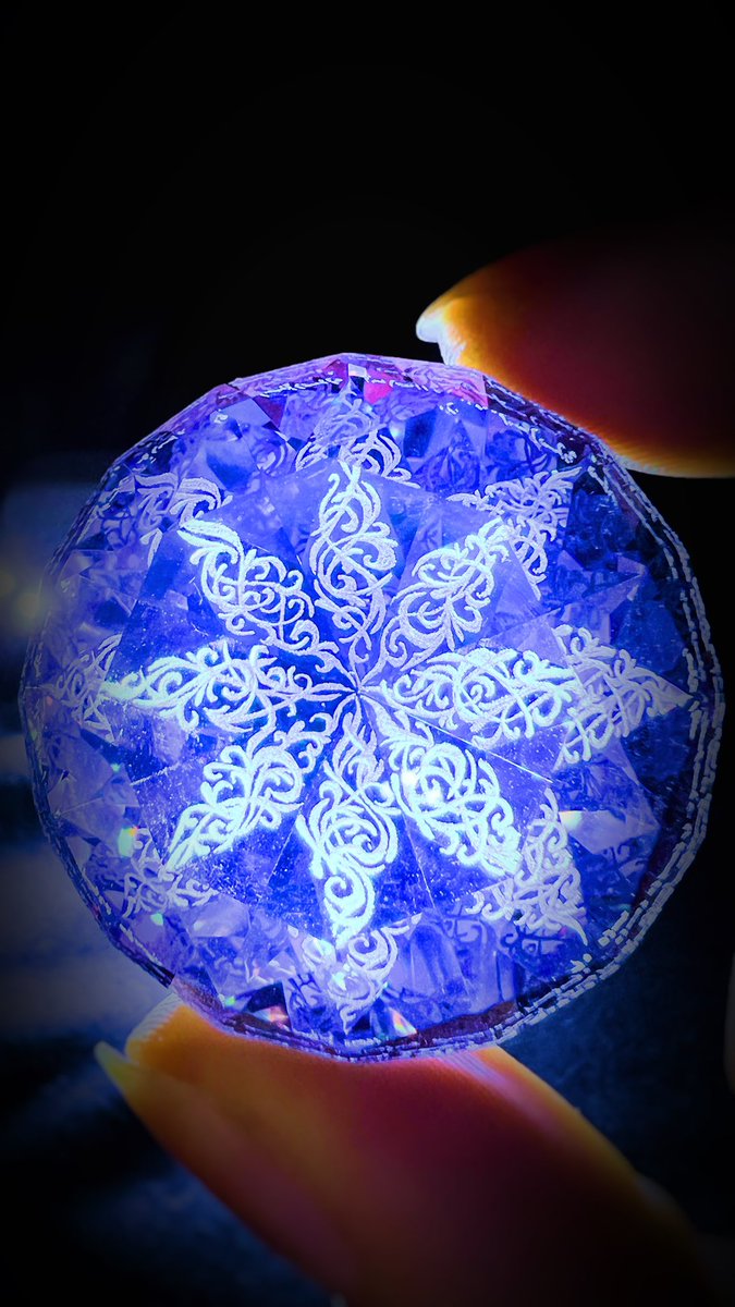 深いブルーの子。 電動ルーターを使用してフリーハンドの手彫りで制作しています。 大きさですが直径40mmぐらいです。 #ハンドメイド #ハンドメイド好きさんと繋がりたい #ガラスエングレービング