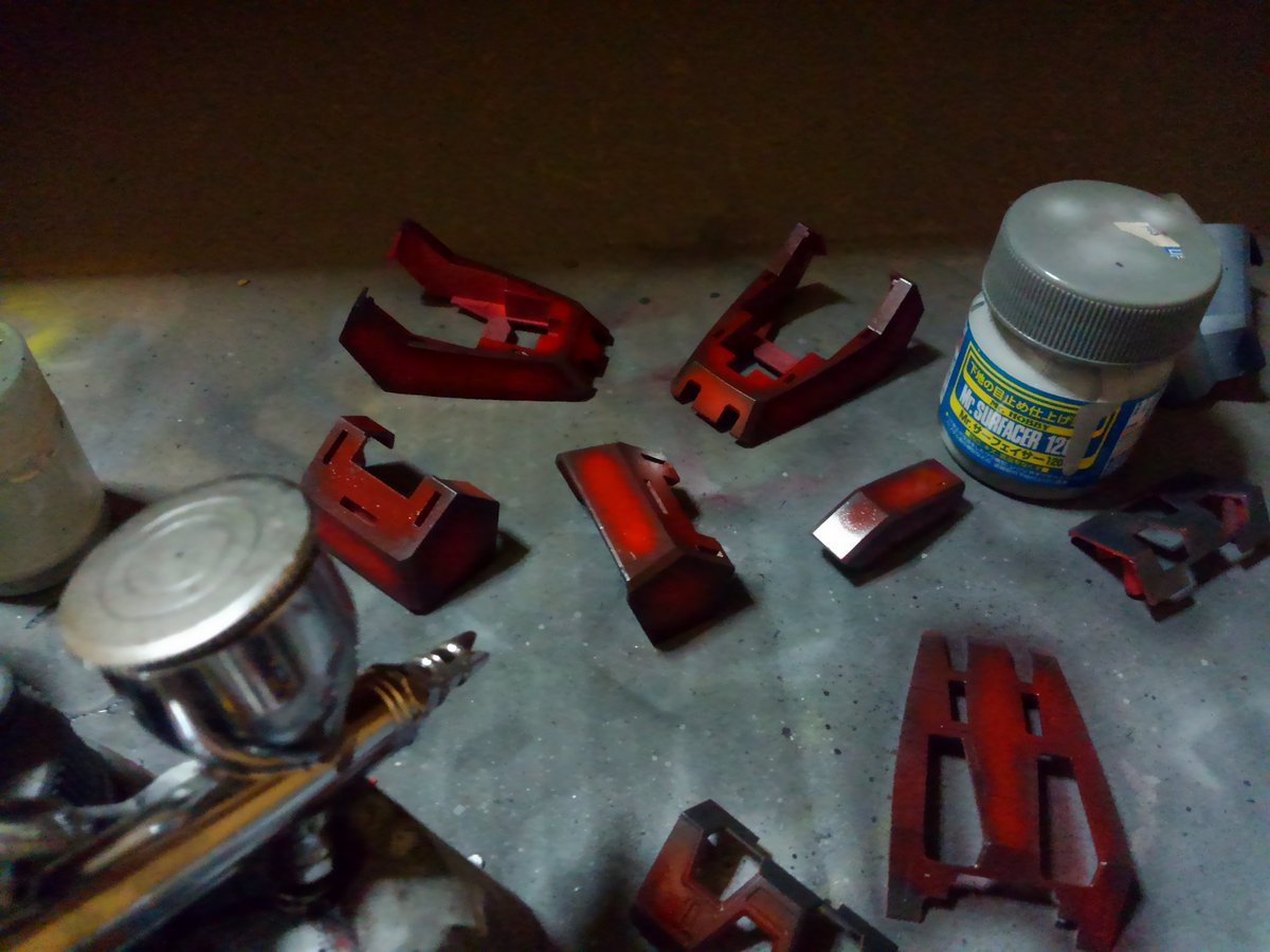 こんばんは😃🌃最近のキットが中々仕上がらない(。>д<) 明日はやや明るめな赤で徐々に塗装していきます。 #ガンプラ #ガンプラの画像貼るとRTされると聞いて #ガンプラは自由だ #ガンプラ好きと繋がりたい #ガンプラはどんな自由な発想で作ってもいいんだ