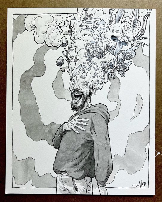 Day 10 - Psychedelic - Ink on 8x10in Multimedia Board - PM if Interested #art #ink #inktober #inktober2021 #psychedelic #psychedelicart #trippin #drugs #hallucinigens #whoa #available #forsale #houstonart #houstontx #houston #htown #htx #austin #texas #epikmoore @inktober