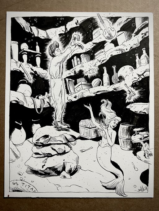 Day 12 - Corpsicle - Ink on 8x10in Multimedia Board - PM if Interested #art #ink #inktober #inktober2021 #corpsicle #fun #fanart #movies #crossover #littlemermaid #disney #titanic #lol #funny #available #forsale #austin #epikmoore @inktober @LeoDiCaprio