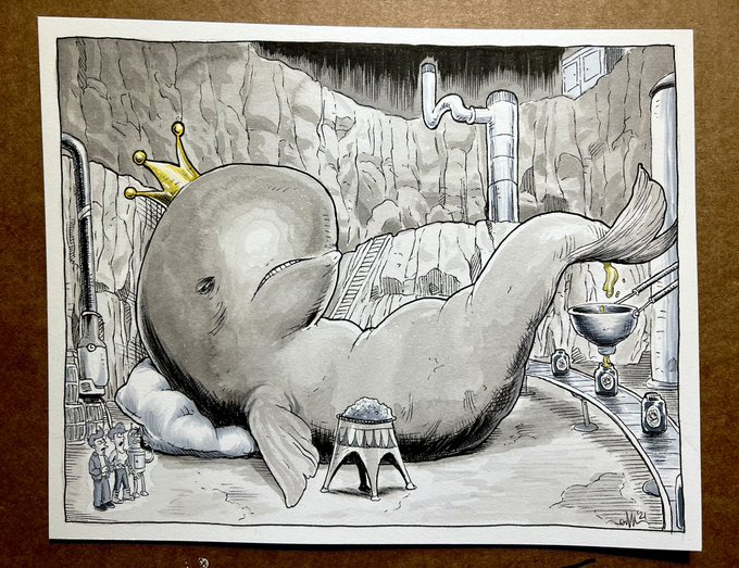 Day 18 - Ambergris - Ink on 8x10in Multimedia Board - PM if Interested #art #ink #inktober #inktober2021 #marker #ambergris #whales #futurama #fanart #slurm #slurmsmckenzie #cartoons #available #epikmoore @inktober