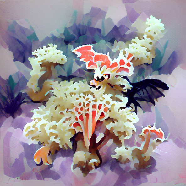 Challenge #Dracofungus de @Coliandre : 🐉🍄#12 : Clavulina rugosa (“commonly known as the wrinkled #coral fungus”) Image générée par IA (#VQGANCLIP, modèle ImageNet 16384, 200 itérations) #Smaugust2021 #Smaugust #MushroomSmaugust