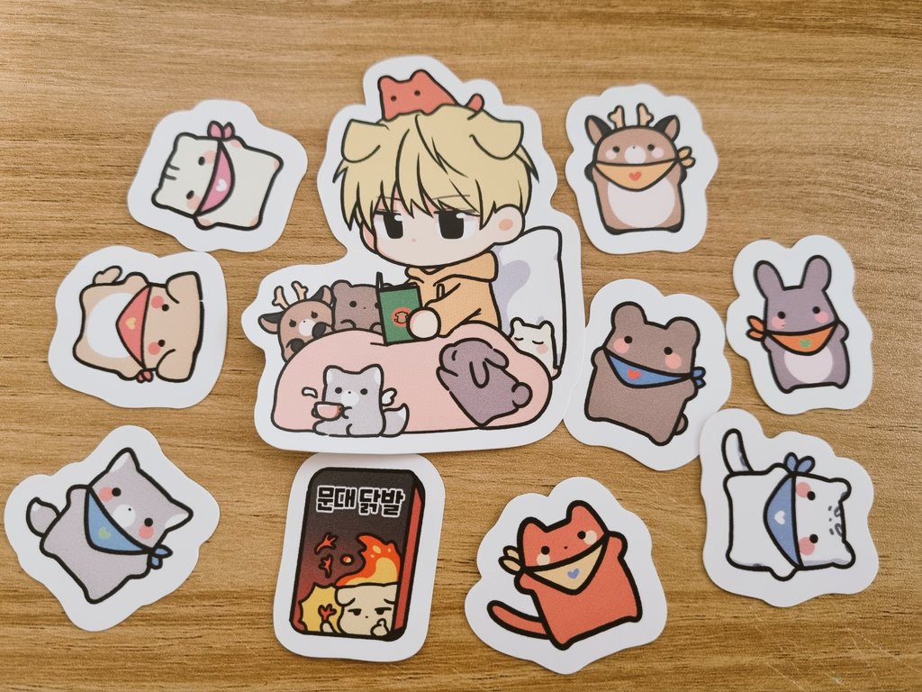 자리가 좀 남아서 랜덤으로 보내드릴려고 문대닭발 조각스티커 만들었는데 넘므 귀엽 ㅋㅋ