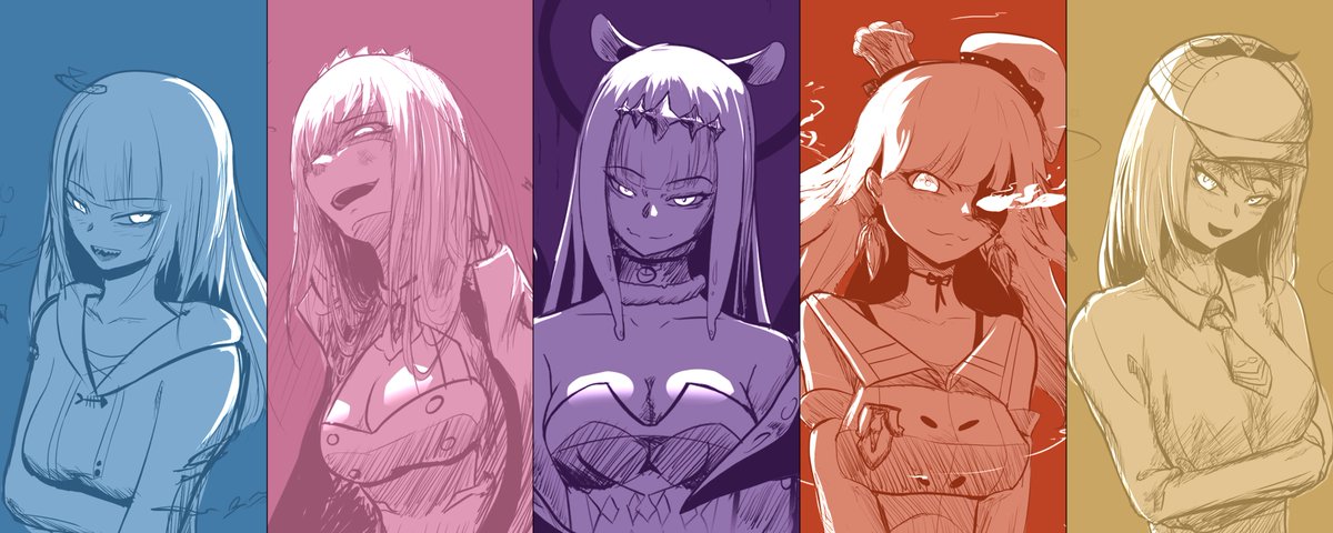 Made this banner to finish my evening, with all your favourite Vtubers, good night now~ #artsofashes #絵ニックス #characterdesign #hololive #hololiveEnglish #hololiveENArt #gawrt #gawrgura #inART #いなート #ameliaRT #callillust