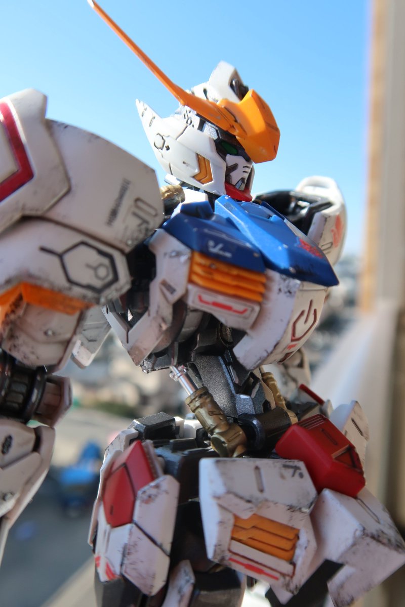 MGガンダムバルバドス 出来た いじってる箇所は無いけど全塗装しました。 やはりバルバドスは汚しチッピングが似合う機体だなぁ