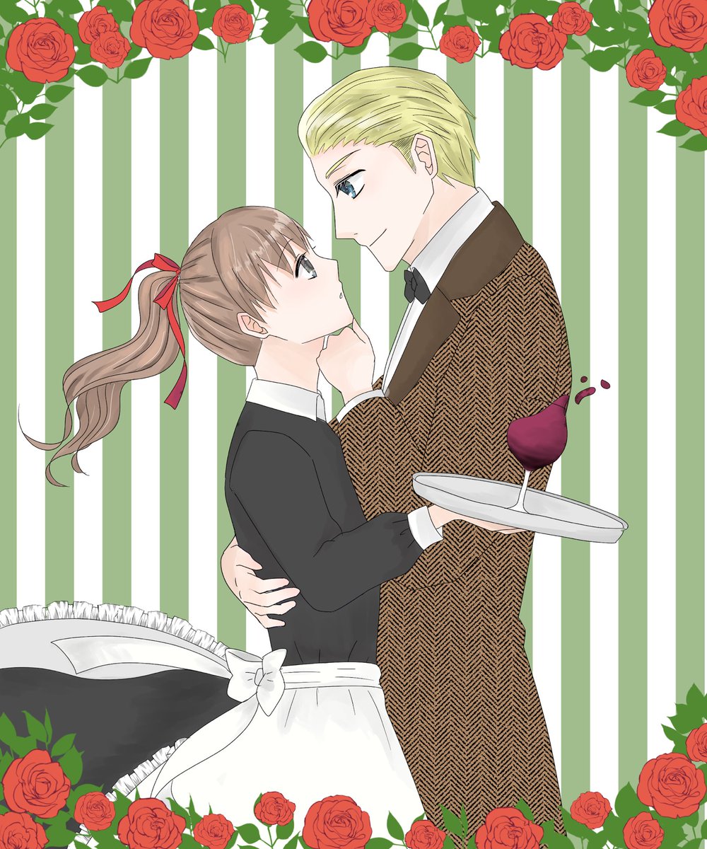 パーティの給仕中に雇い主の友人のご子息からちょっかいをかけられるメイドさん、の図😊🌼 #お絵かき #イラスト #絵師さんと繋がりたい #絵描きさんと繋がりたい #イラスト好きな人と繋がりたい #初夏の創作クラスタフォロー祭り #オリキャラ