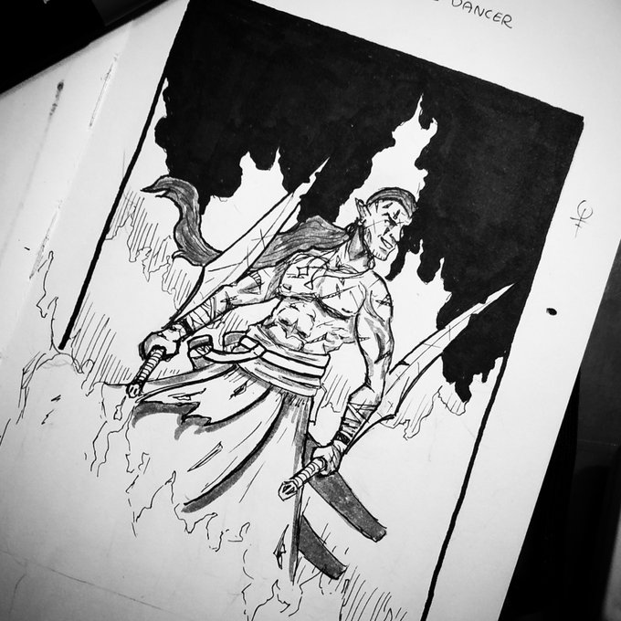 #inktober2019 9 - Major Arcana: The Blade Dancer. Chaotic Evil Major Spirit. Ideal of fury, madness and destruction. instagram.com/p/B3dEAfsIYzR/ #Inktober #Fantasy #DungeonsAndDragons #Homebrew #Art #Sketch #Ink #Dancer #BladeDancer