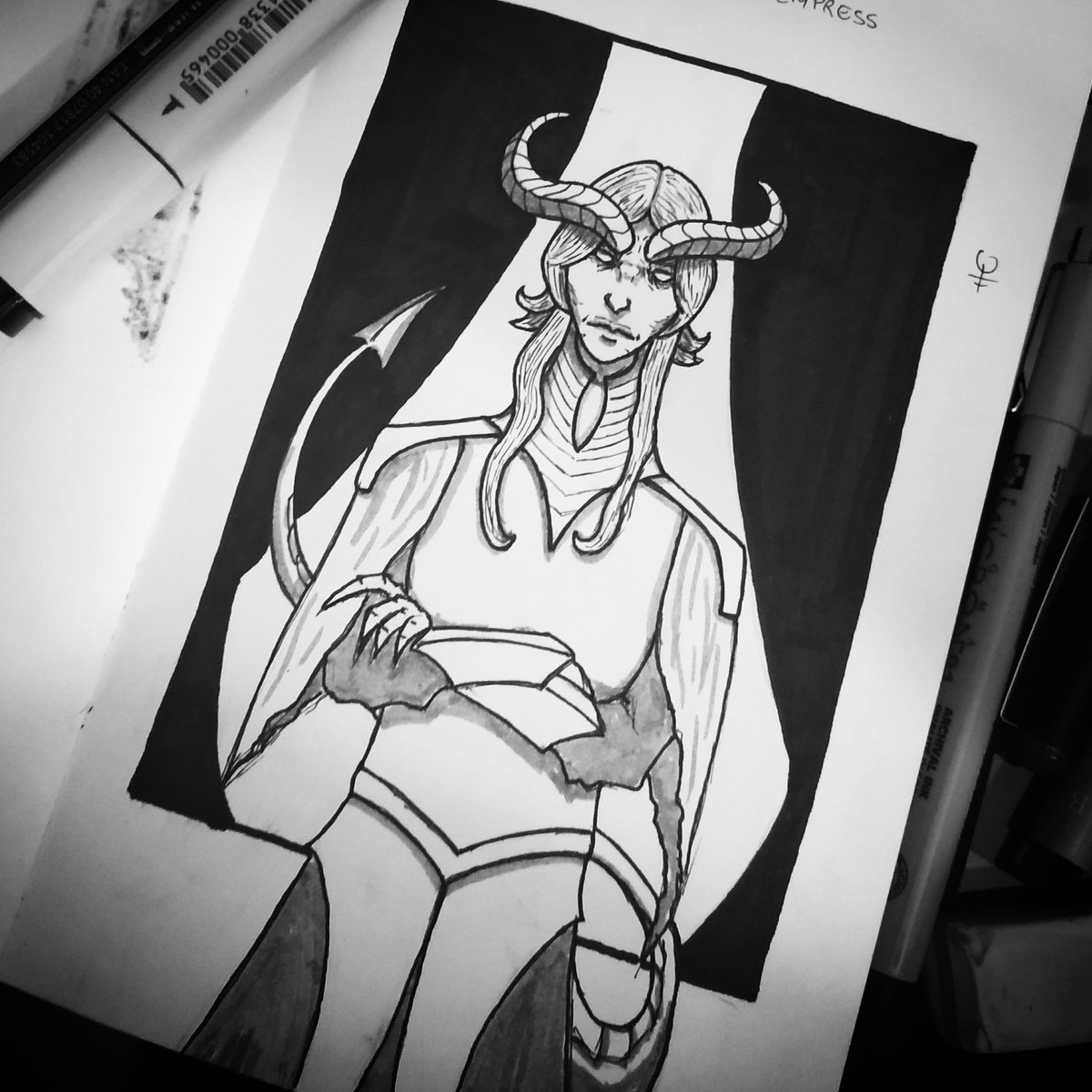 #inktober2019 11 - The Four Monarchs: The Rightful Empress. A true monarch isn't born with a crown on its head. instagram.com/p/B3fuawGo6BY/ #Inktober #Fantasy #DungeonsAndDragons #Homebrew #Art #Sketch #Ink #DarkLord #Armor #King #Sovereign #Monarch #Empress #Queen #Tiefling #Queen