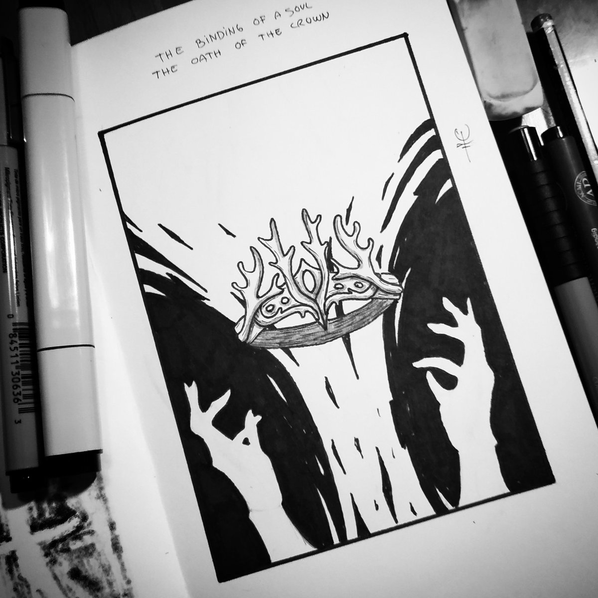 #inktober2019 13 - The Four Monarchs: The Fey King. A king is a force for good and order, and never should embrace chaos and trickery. instagram.com/p/B3k-46mo8jt/ #Inktober #Fantasy #DungeonsAndDragons #Homebrew #Art #Sketch #Ink #DarkLord #Armor #King #Trickster #Fey