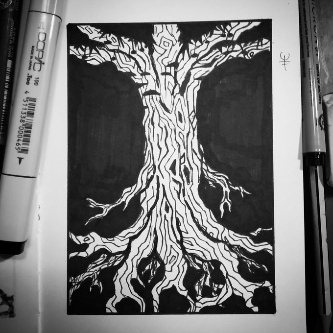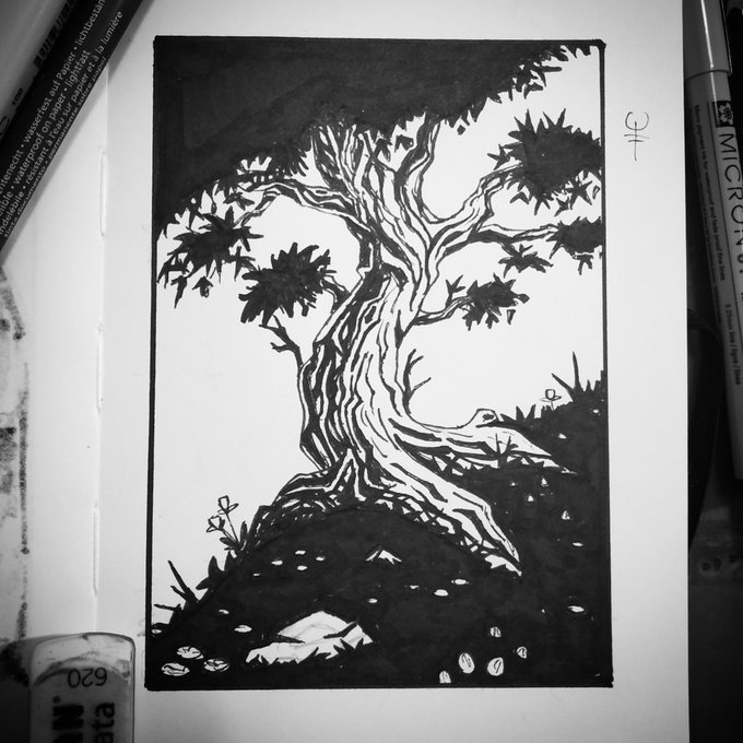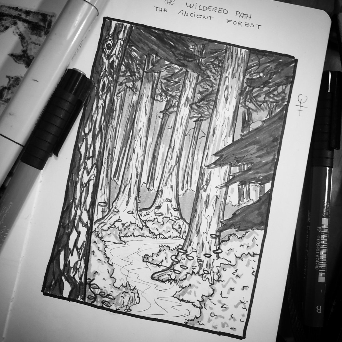 #inktober2019 18 - The Wildered Path: The Ancient Forest. They say the forests of Lorkan are as old as Endorea itself. They are full of memories, spirits and strange magic. instagram.com/p/B31xUgXo3qH/ #Inktober #Fantasy #DungeonsAndDragons #Homebrew #Art #Sketch #Ink #Forest #Old