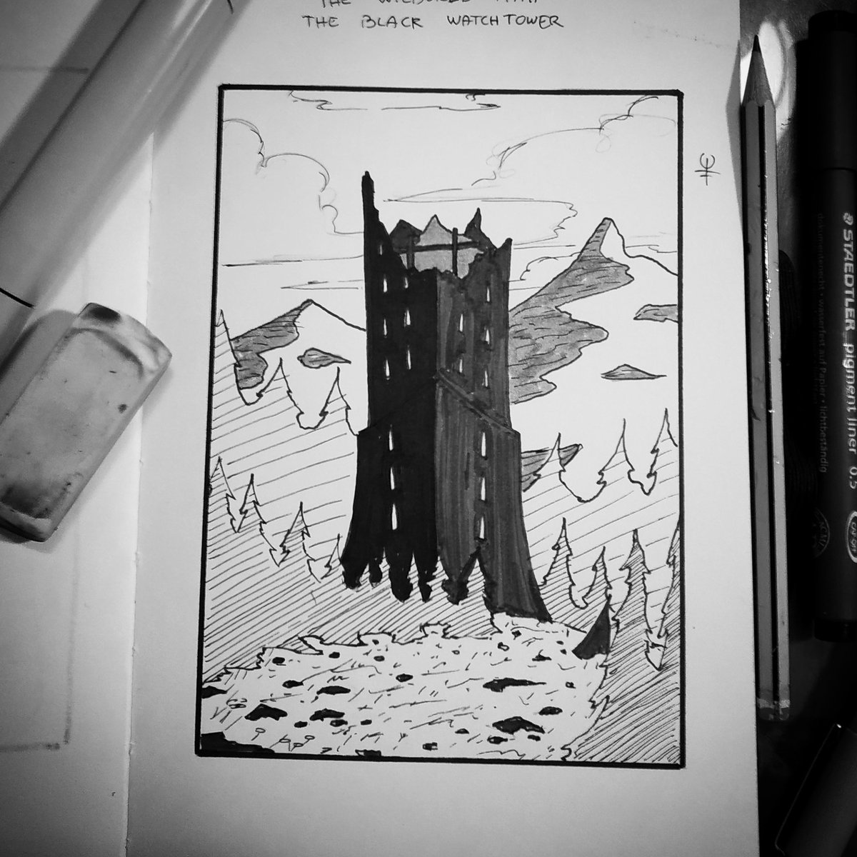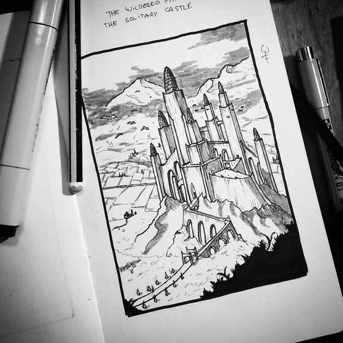 #inktober2019 19 - The Wildered Path: The Solitary Castle. The High King of the Elves rules the elven kingdoms on the whitestone castle of Caer Avalon. instagram.com/p/B32d4gJIZwa/ #Inktober #Fantasy #DungeonsAndDragons #Homebrew #Art #Sketch #Ink #Castle #Fortress