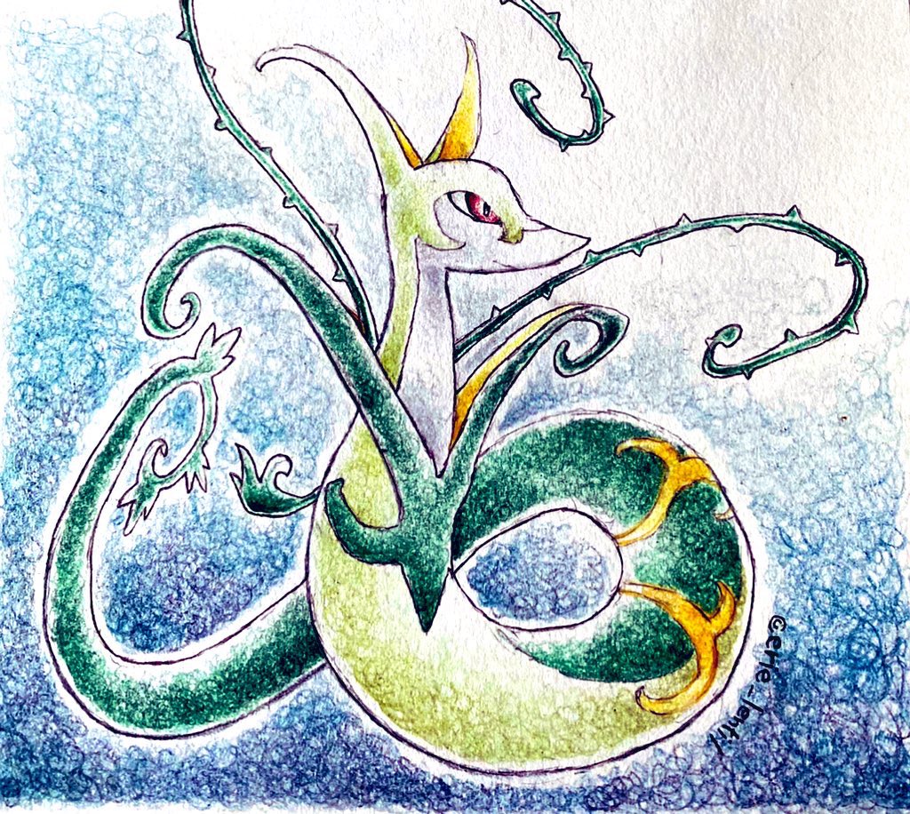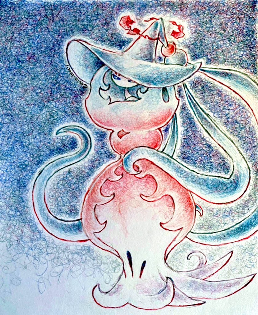 色マフォクシー様 #ポケモンイラスト #色鉛筆