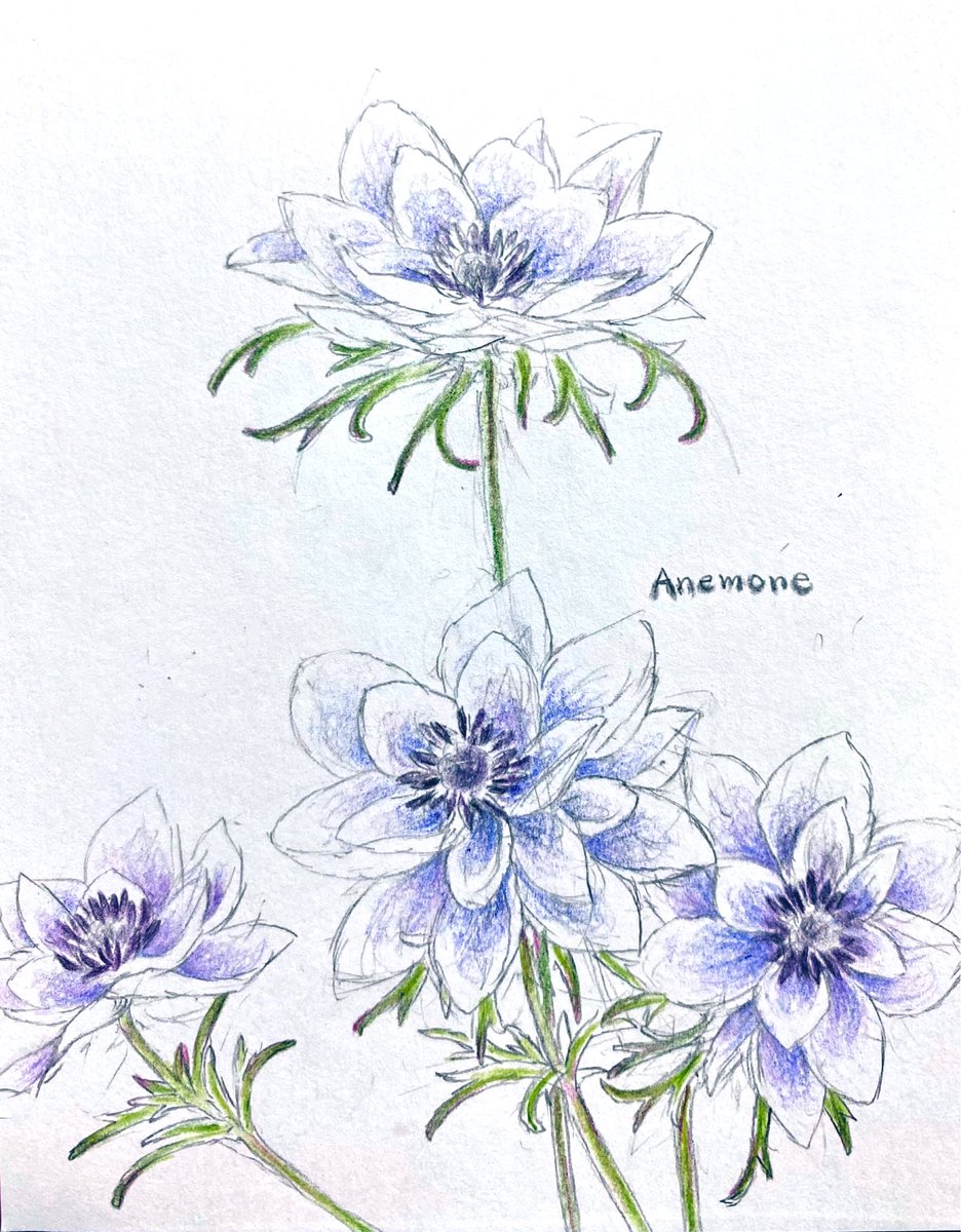 4月2日の誕生花 アネモネ(キンポウゲ科イチリンソウ属) #色鉛筆
