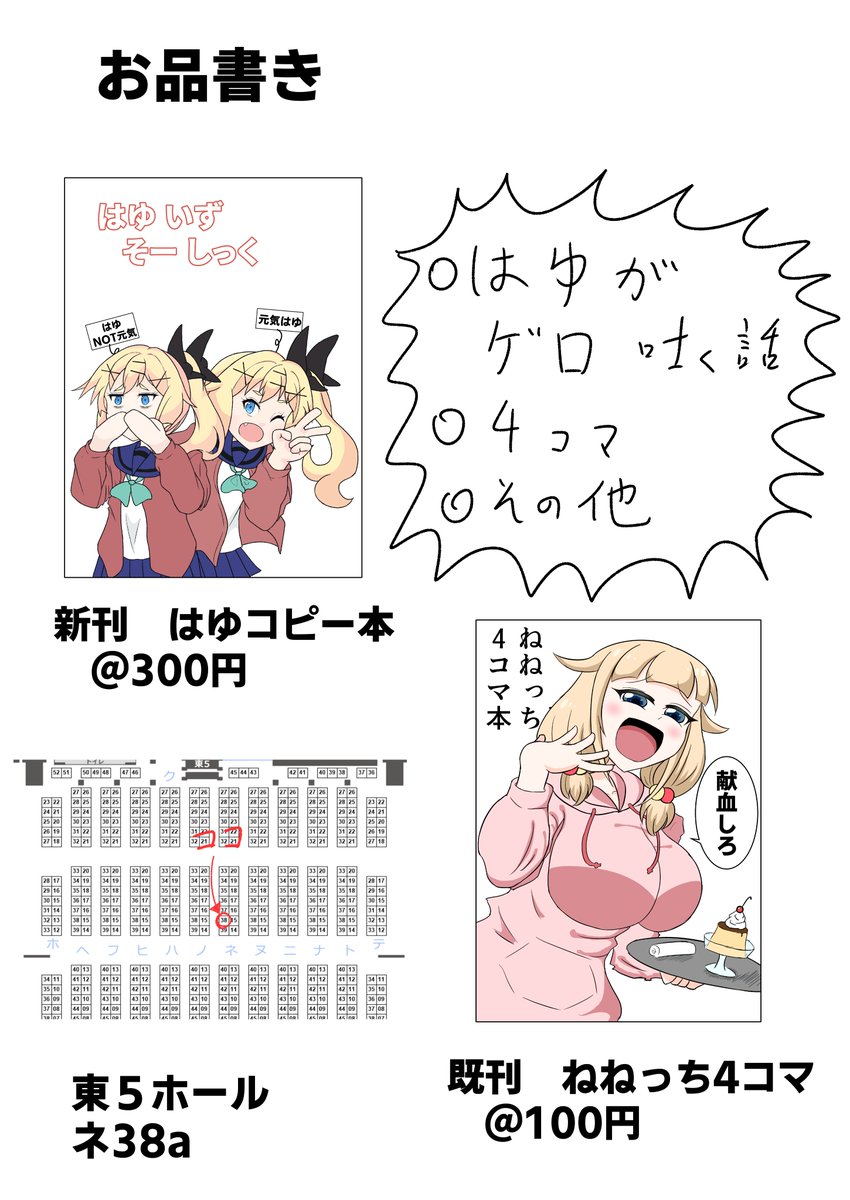 ◎あなたのサークル「ヴィントミューレ」は、木曜日 東地区“ネ”ブロック-38a に配置されました。 おちこぼれフルーツタルトです!! 貫井はゆです!! よろしくお願いします!!! webcatalog-free.circle.ms/m/Circle/15701… #C99WebCatalog