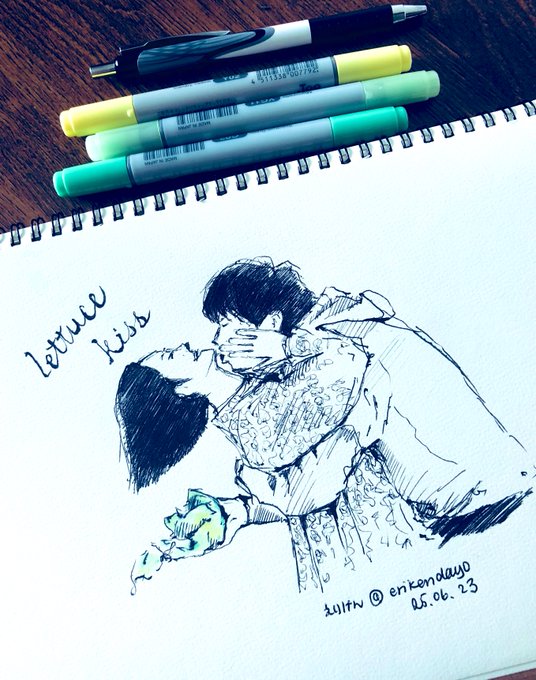 1 7 これは鋼太郎さんから描き始めました。ふりふりのお衣装とてもすてきですよね。手の部分、指の多さ👁️👁️凝視して気をつけて描きました。たぶん本数は合っているはず←? 圭さんのお顔は超絶バランスが難しいので一発描きはいつもすごく緊張します👁️👁️💨 23/05/02 08:39
