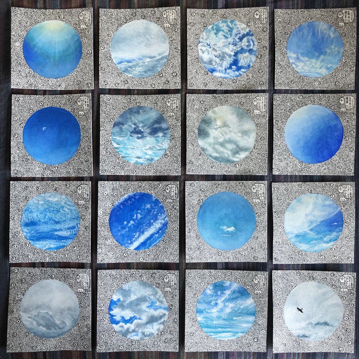 今日の空 2020年5月1日〜2020年5月16日までをまとめて撮ってみました。 The sky of today 1/5/2020〜16/5/2020 #art #artwork #1日1絵 #routine #空 #sky #space #画用紙 #水彩 #インク #ペン #watercolorpainting #ink #pen