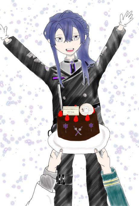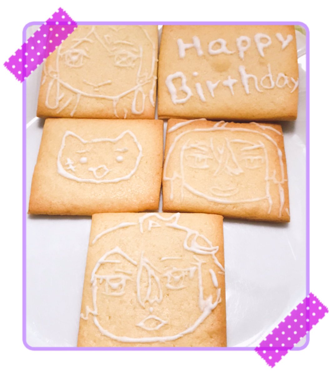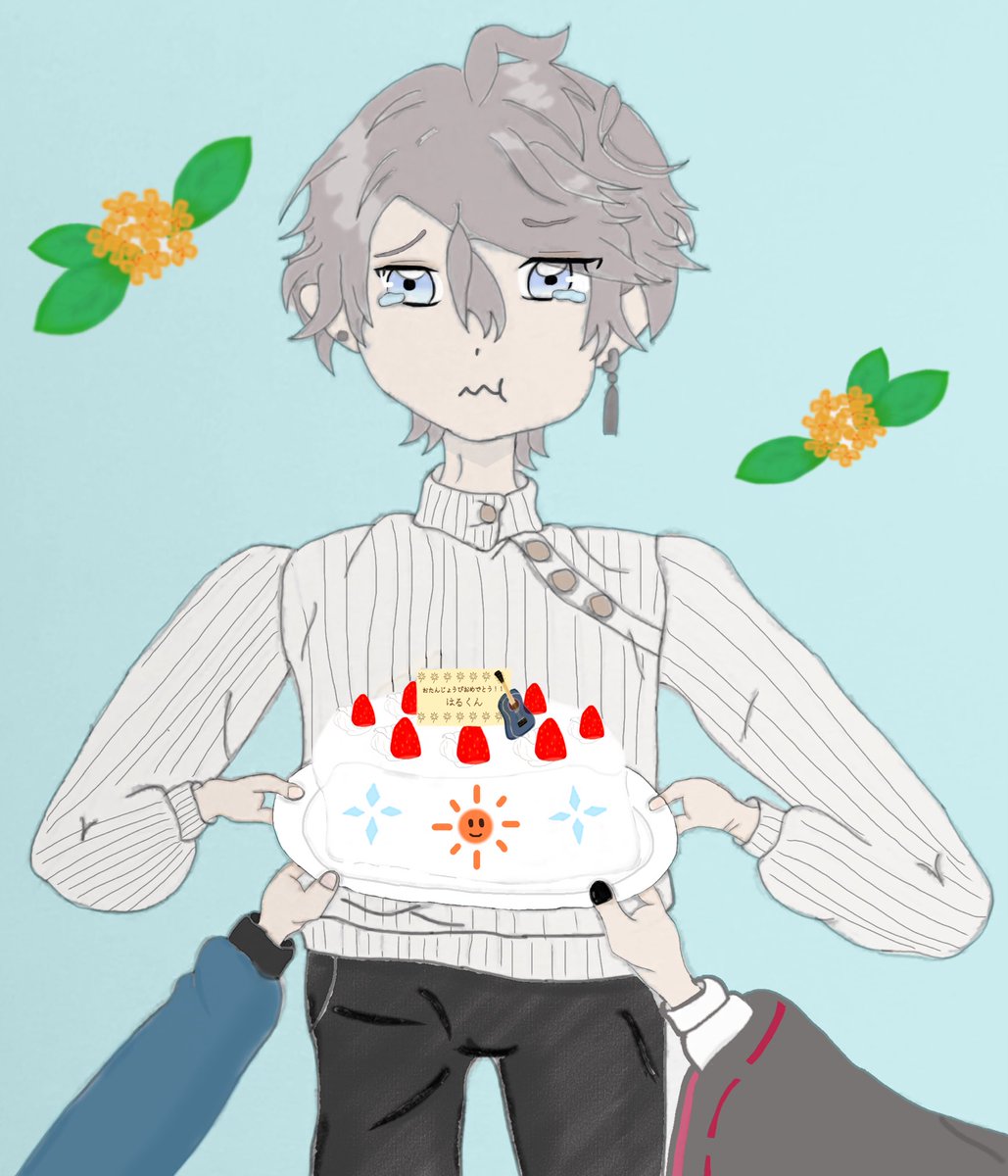 お誕生日おめでとうございます!! 素敵な一年になりますように✨ イラスト下手ですみません💦 ケーキ薄くなったし、クッキングシートにアイシングでお顔書いたんですが、乾かないしひび割れそうだしで、直接書くべきだったかなとちょっと後悔してます(>︿<。) #描いた晴 #甲斐田晴誕生日2021
