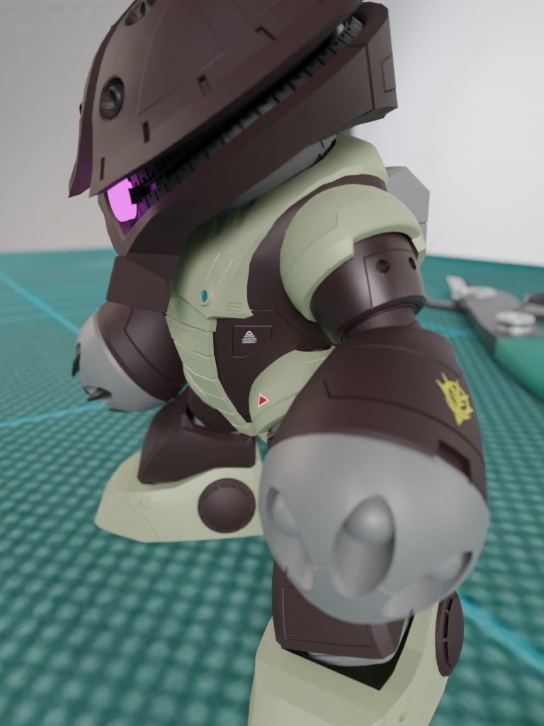 #2022年自分が選ぶ今年の4枚 #2022SelectedWorks #アッガイ モデリングして #3Dプリンタ で出力して #アッザム の #ガンプラ を作って #ガンキャノン で遊んでる最中 まだまだ遊ぶぞー #blender #blender3d #b3d #3dcg