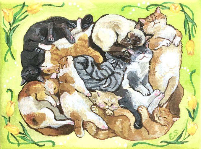 ご来場ありがとうございました!皆さんとのお話が面白く、あっという間の1日でした😳💨 ペット似顔絵のご依頼が続いております。🙇♀️順次制作に入りますので、楽しみにお待ちくださいませ。 明日も13時から17時まで在ねこ予定です🐈 今まで描かせていただいた似顔絵がずらり。 #冬のほのぼの動物展