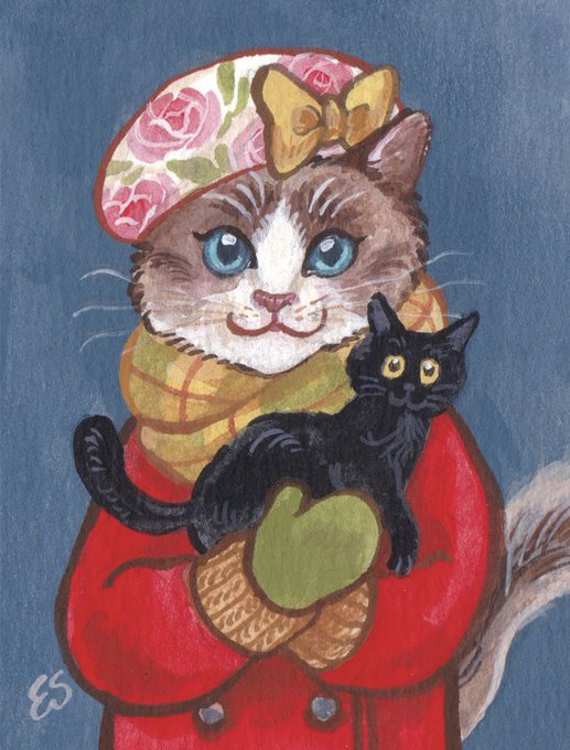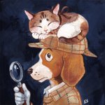 せざいえり出版記念個展『#ねこさんはめいたんてい』5日目。今日は少し肌寒いですね。 絵本原画以外のイラストも展示しております。こちらは意外な仲良し。昔話では悪者になりがちな狼、実はそうでもないかも…? 「乾杯」 13.5㎝×13.5㎝程の作品です。八角形 #illustraion